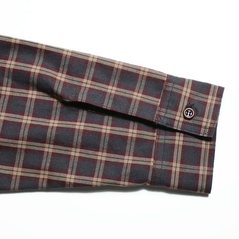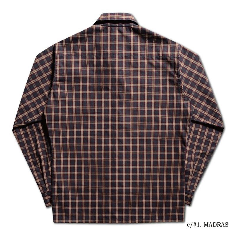ボクシーシルエットで提案するマドラスチェックシャツ。音が鳴る程ハリとコシがあるファブリックは色合いが独創的。一風変わったスタイルを是非お試し下さい。