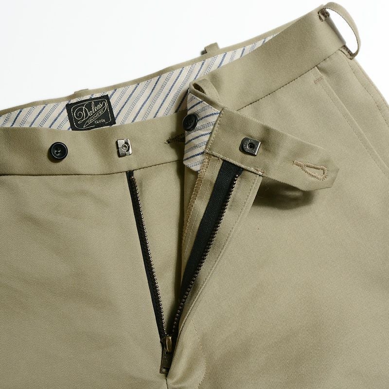 ドレス&ワークの融合として生まれたこのトルマン 。トルマンという名も形状も素材も当時には存在しておらず、全て仮説のうえでオリジナル企画したパンツですが、それでも当時の雰囲気を帯びていることで「当時の哲学を継承している」とお伝えしたいと思います。スタイリッシュな形状と見た目、着こなしが基本にある時代を反映し、ワークの要素を素材や創りに置き換えて企画することでドレス&ワークとしています。
