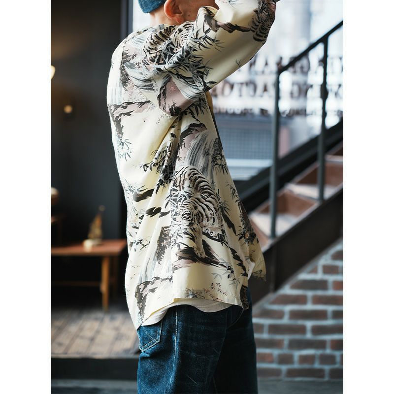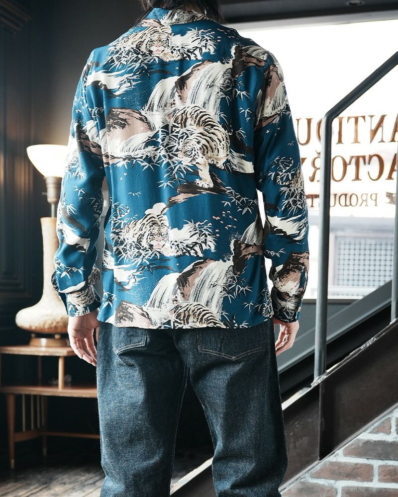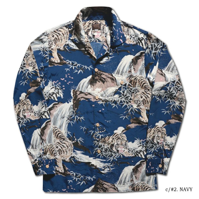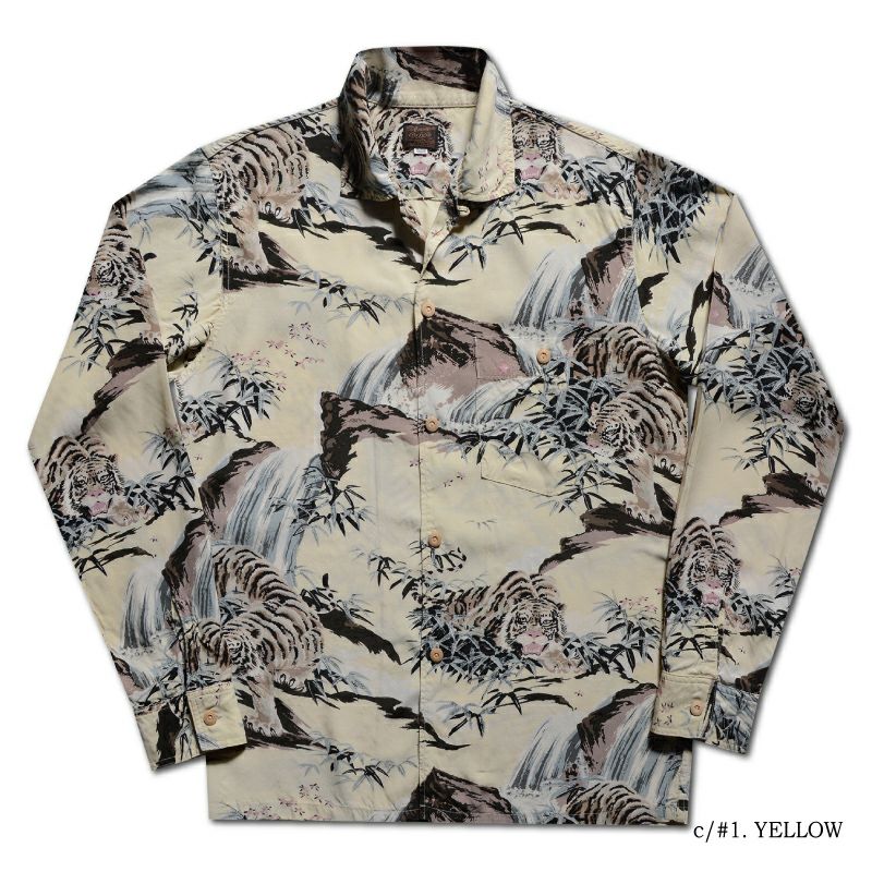 16色を駆使し、職人手捺染によるRAYON100%の長袖ハワイアンシャツ
