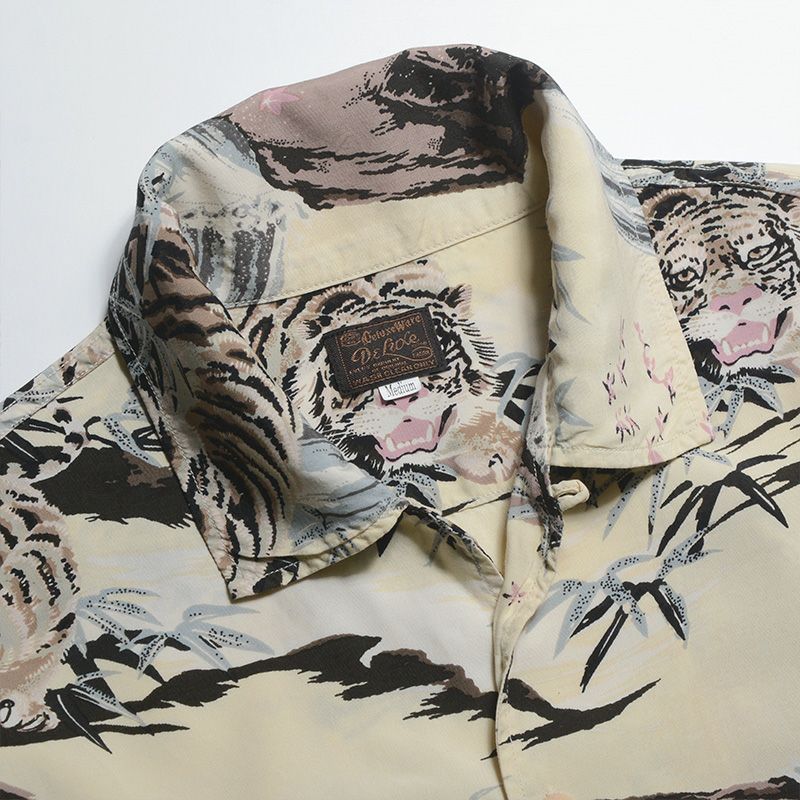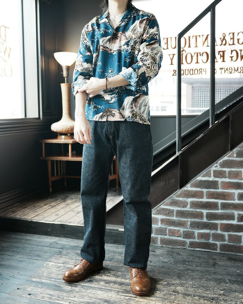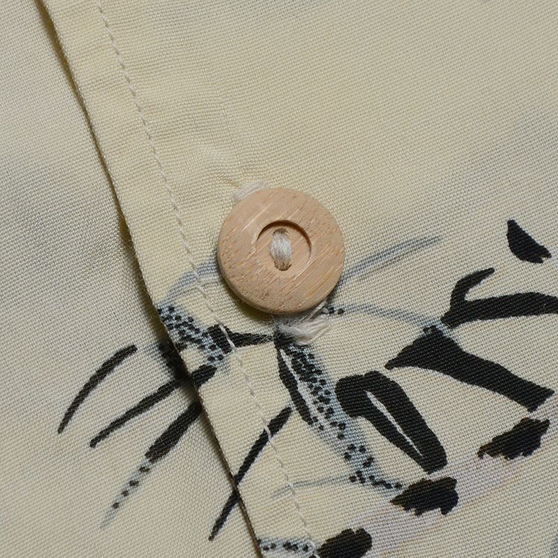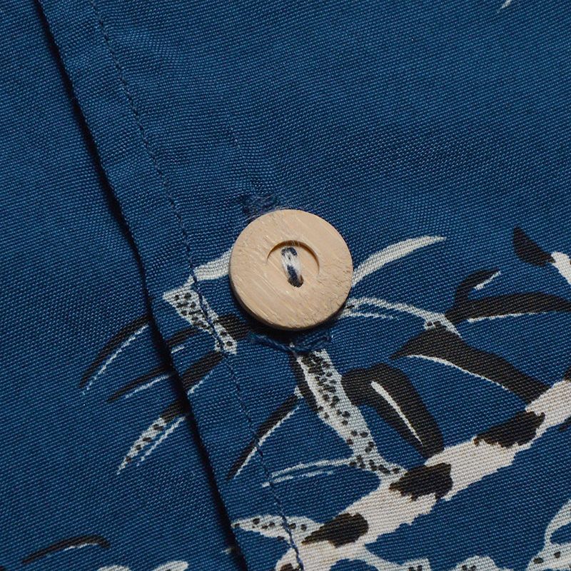 福井県福井の旧式織機から生み出したレーヨン100%の生地素材と職人による16色手捺染ハワイアンシャツ。レーヨン特有のドレープ感とヴィンテージ感漂う手捺染プリントが雰囲気◎