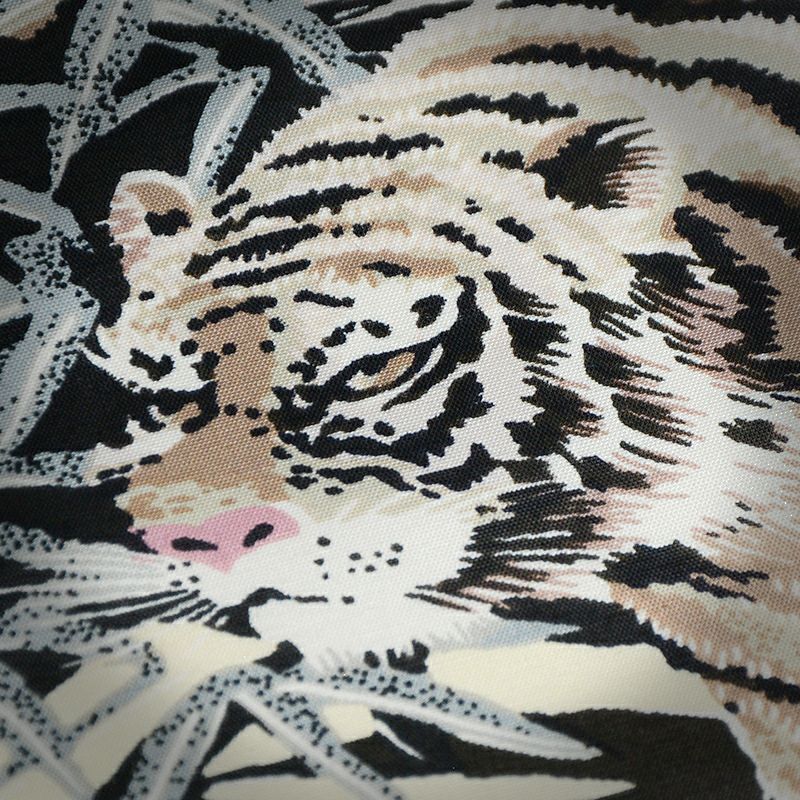 産地福井県福井の旧式織機により製造したレーヨン100%素材。経糸にフィラメントレーヨン糸を張り、緯糸にレギュラーレーヨン糸を打ち込み製造したファブリックをカンバスに、職人の手捺染16色プリントを施し丁寧に仕上げました。レーヨン特有のドレープ感とヴィンテージさながらの職人手捺染プリントが特徴です。