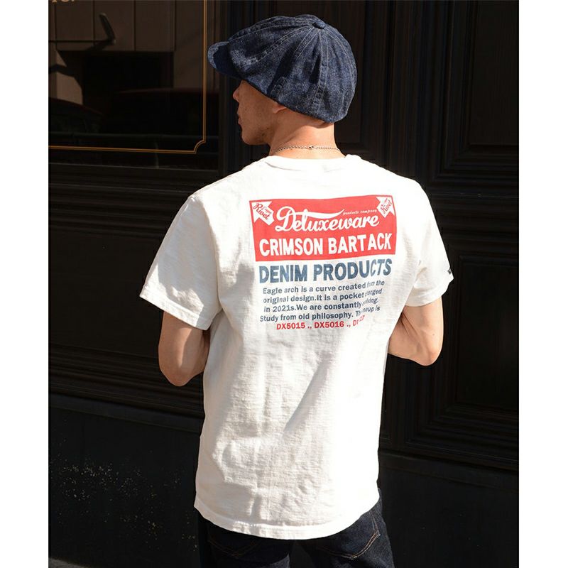 デラックスウエアTシャツの顔となる最高強度Tシャツ「DXTシリーズ」。厚くガッシリ編み上げた素材は正しく最高強度に相応しい風格を放っています。タフな素材としっかりした創り込みでTシャツの最高品質を体感出来る唯一無二の新Tシャツシリーズを是非体感下さい。プリントは、デラックスウエアのジーンズデザイン。