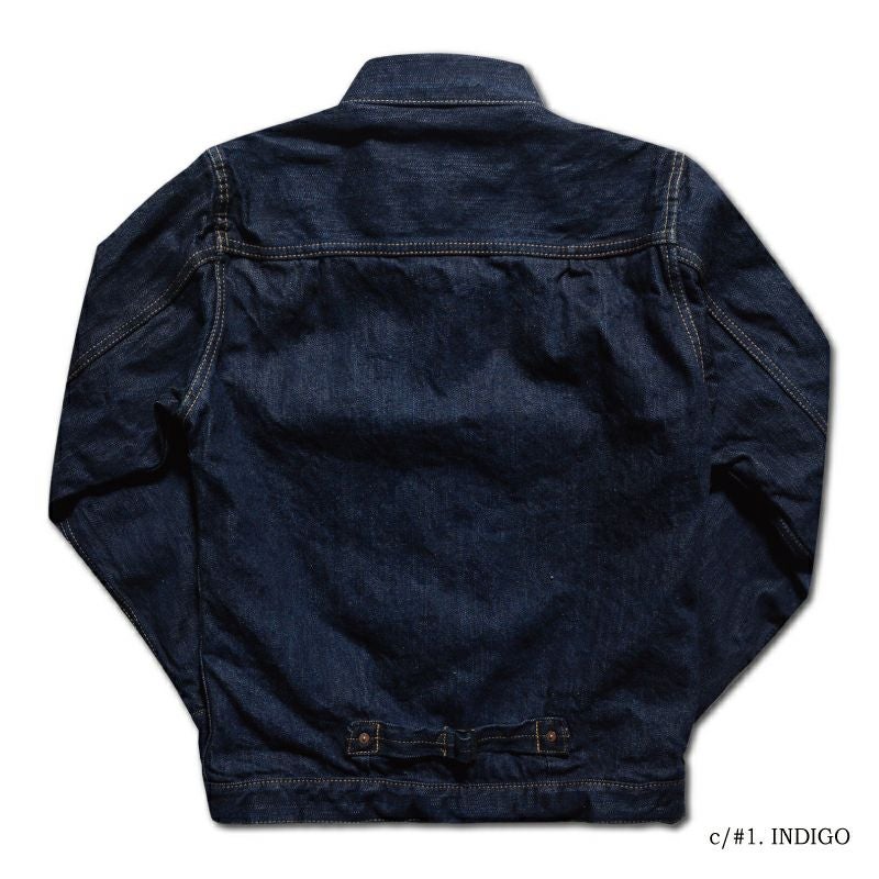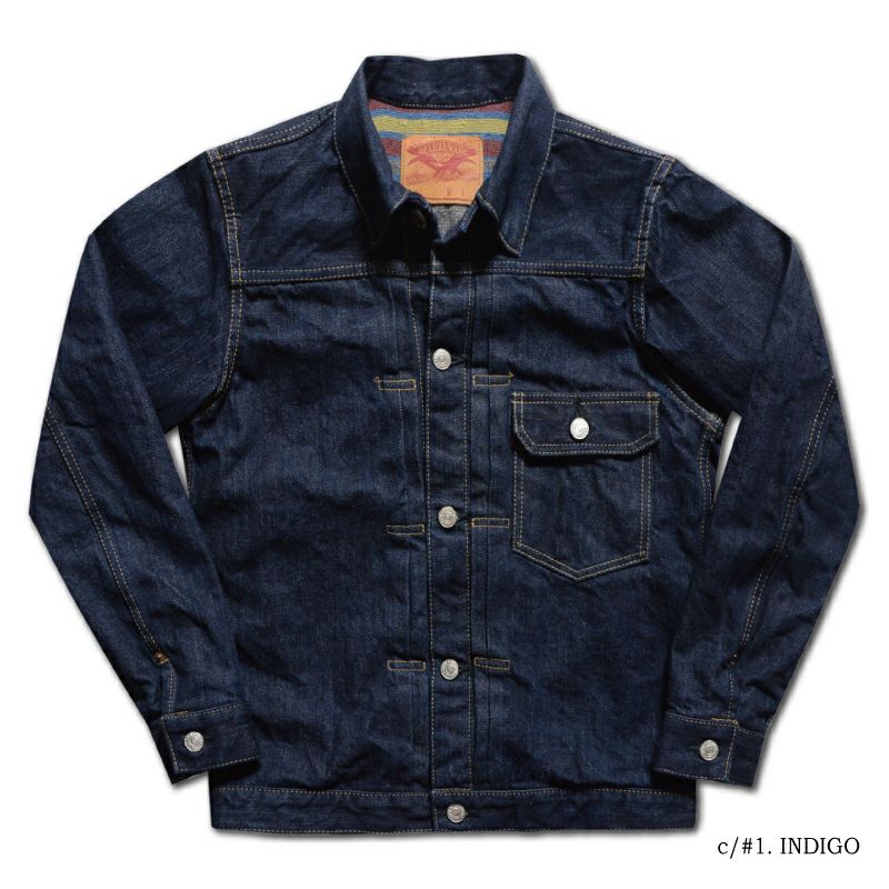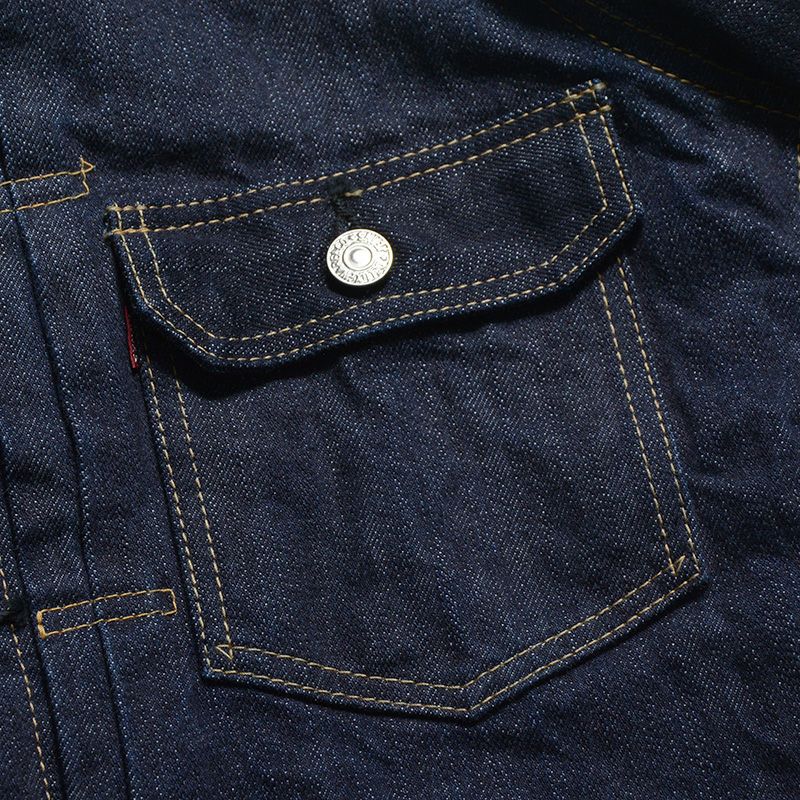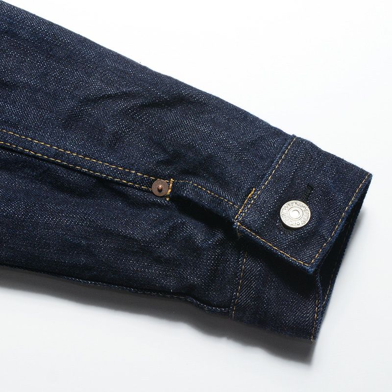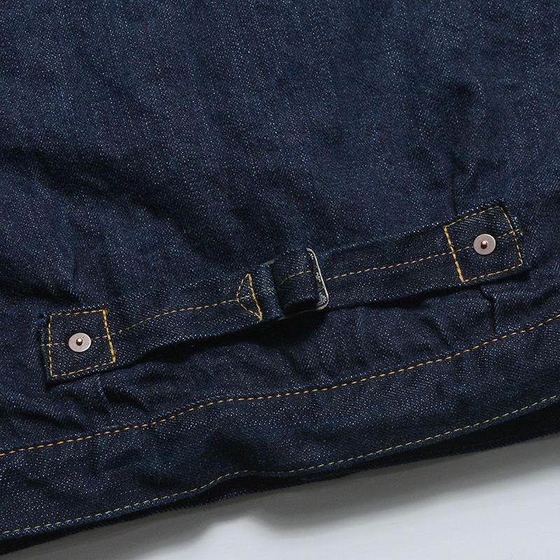 「作業着をファッションに変える」ことそのものが世論に対するメッセージとして、または反抗の象徴となった1950年代。そこからおよそ70年経過した現在にもその「精神」は息づいているかのようにデニムジャケットは「何かを主張する」商品であると思います。しかし情報が飽和する現代では局地的かつ利己的なモノは受け入れられる場が少ないようにも感じます。「主張を感じながらも魅力」を発することが求められ、素材であれディティールであれカタチであれ思考を重ねた作品だけが認められるモノとなるのでしょう。古き良き部分、商品が持つイメージ、そして今に対応する志向が混ざり合い一つになった商品として提案します。そう言う意味では「もの言う商品」だと自負しています。 ※ヴィンテージステッチと呼ぶ「製造法」により、縫製糸14種を使用しミシンの運針(ピッチ)を5針から8針と大きく大胆に縫製したパッカリングなどの経年変化が期待出来るステッチが特徴。瞬間限定ライニング付きモデル。