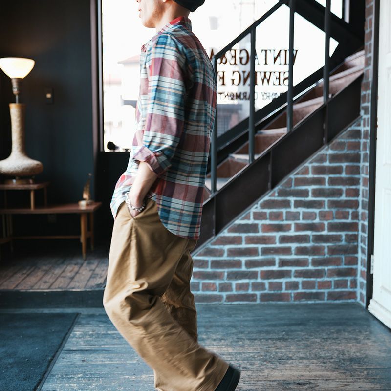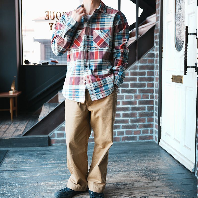 毎年人気のオールシーズン対応のスルーチェックシャツにマルチチェック柄が登場。軽量かつ丈夫で風も水も通過する特殊素材は兵庫県西脇でオリジナル製造したもの。夏には腕まくりして、春秋は羽織として、冬にはコートのインナーとして使える最も身近に活躍する人気シャツです。