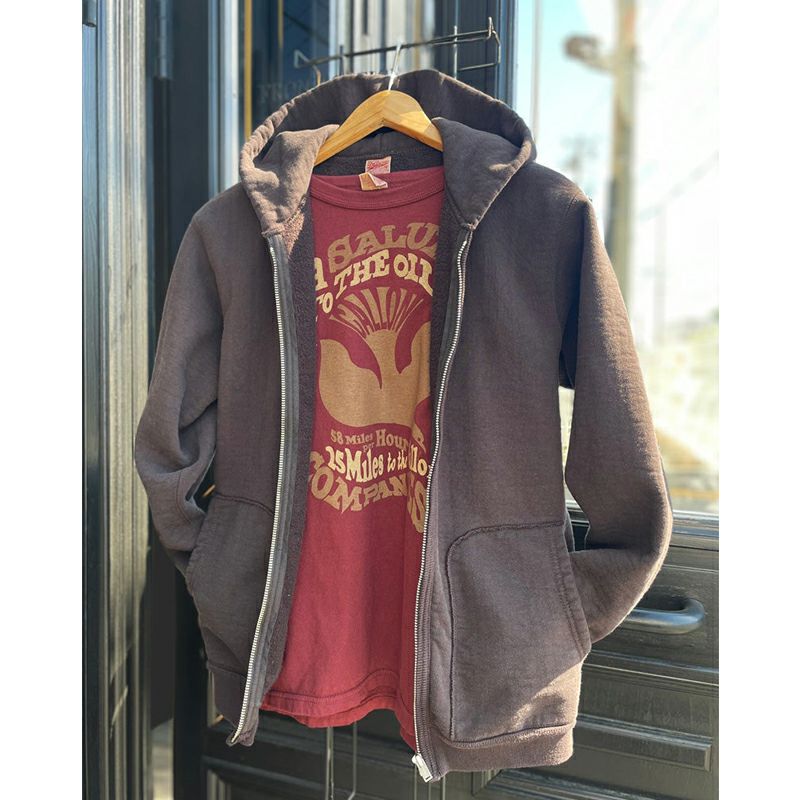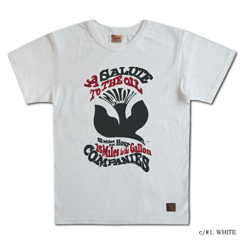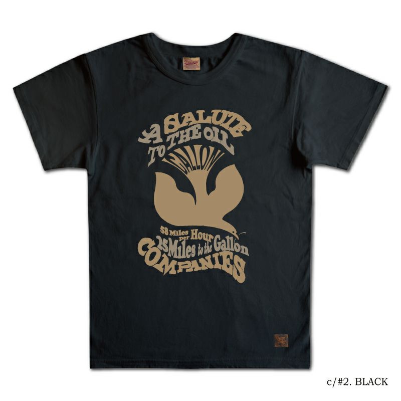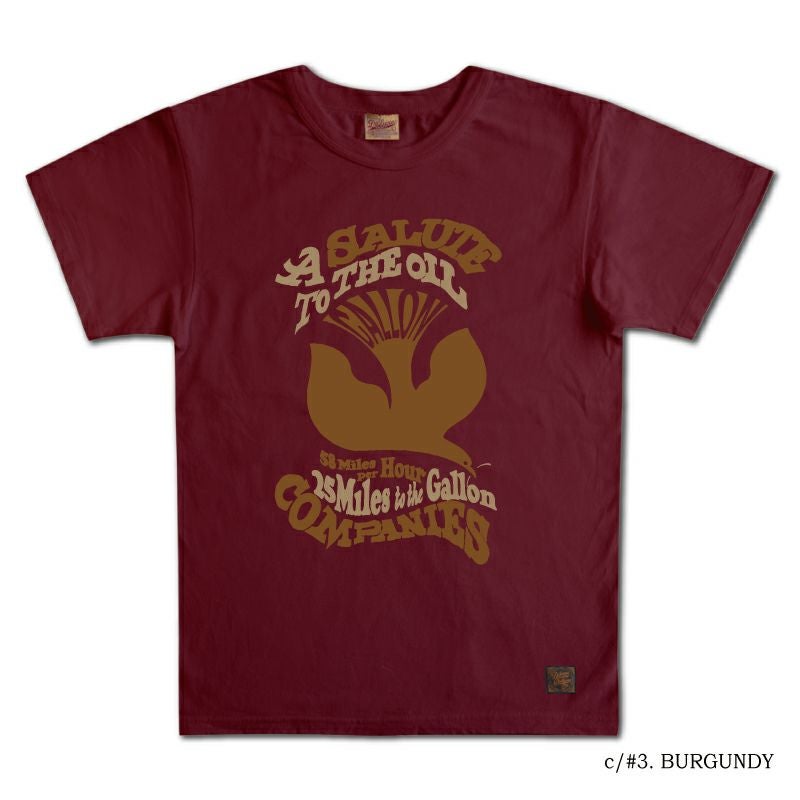 「薄い、柔らかい、丈夫」の3拍子揃った天竺素材を使用した「MT(BRGM)シリーズ」Tシャツ。ネック強度はそのままにミディアムオンスの生地厚と柔軟性、着心地が魅力のシリーズです。軽快な着心地と古着のような雰囲気・質感がお好きな方は是非お試しください。プリントは、オイルカンパニーデザインです。