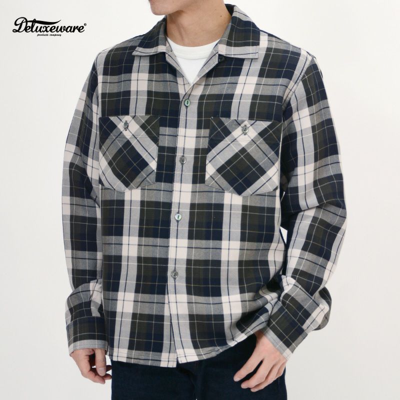 RAYON100%による希少な引き揃えオックス織りの長袖チェックシャツ