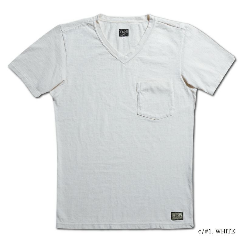 和歌山の旧式吊編機により、ゆっくり空気を含みながら編み上げたオリジナルの丸胴生地を使用したTシャツ。空気紡績糸によるドライな質感と絶妙な厚さが1940年代を彷彿しながら、サラッとした着心地がクセになります。雰囲気抜群のVネックポケット付きTシャツです。