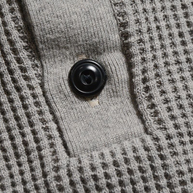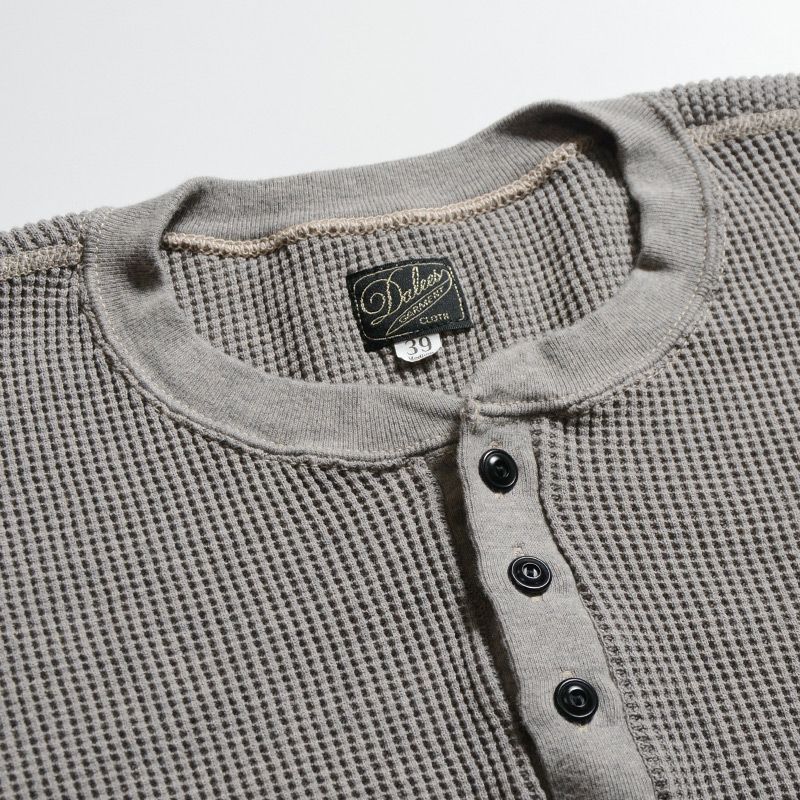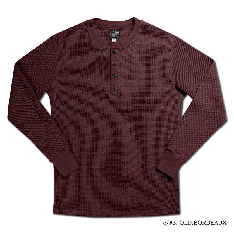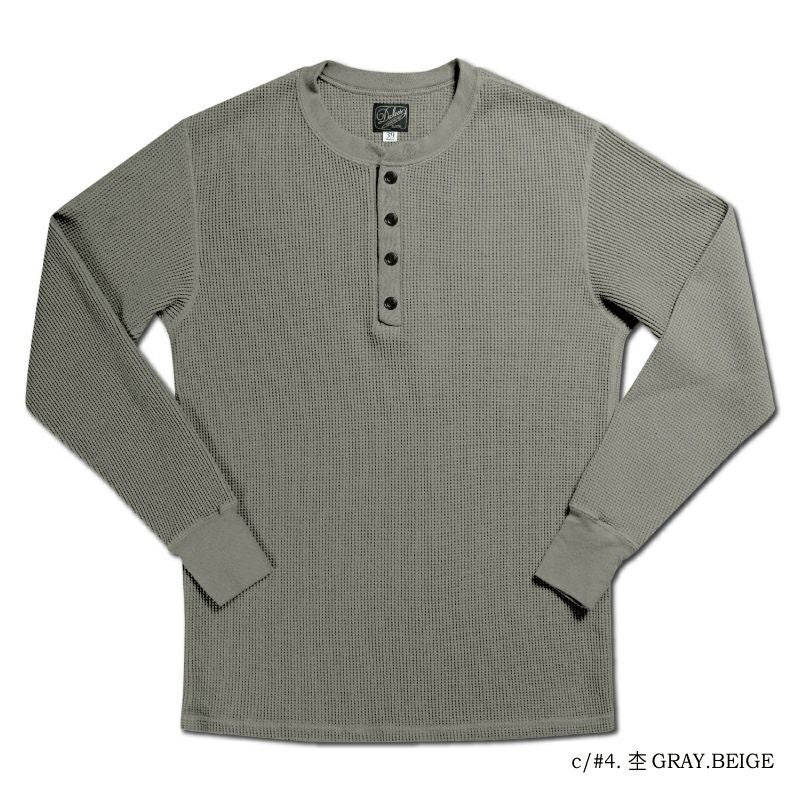 アメリカン両面縦目編みで仕上げたサーマル素材によるヘンリーネックサーマル。着脱のし易さや着心地に優れ、多色の色合いが個性を主張します。また、ヘンリーネックの首元によりクラシックな印象が生まれるため、シャツやジャケットのインナーとして相性抜群です。様々なシーンで使えるサーマルとしてオススメです。