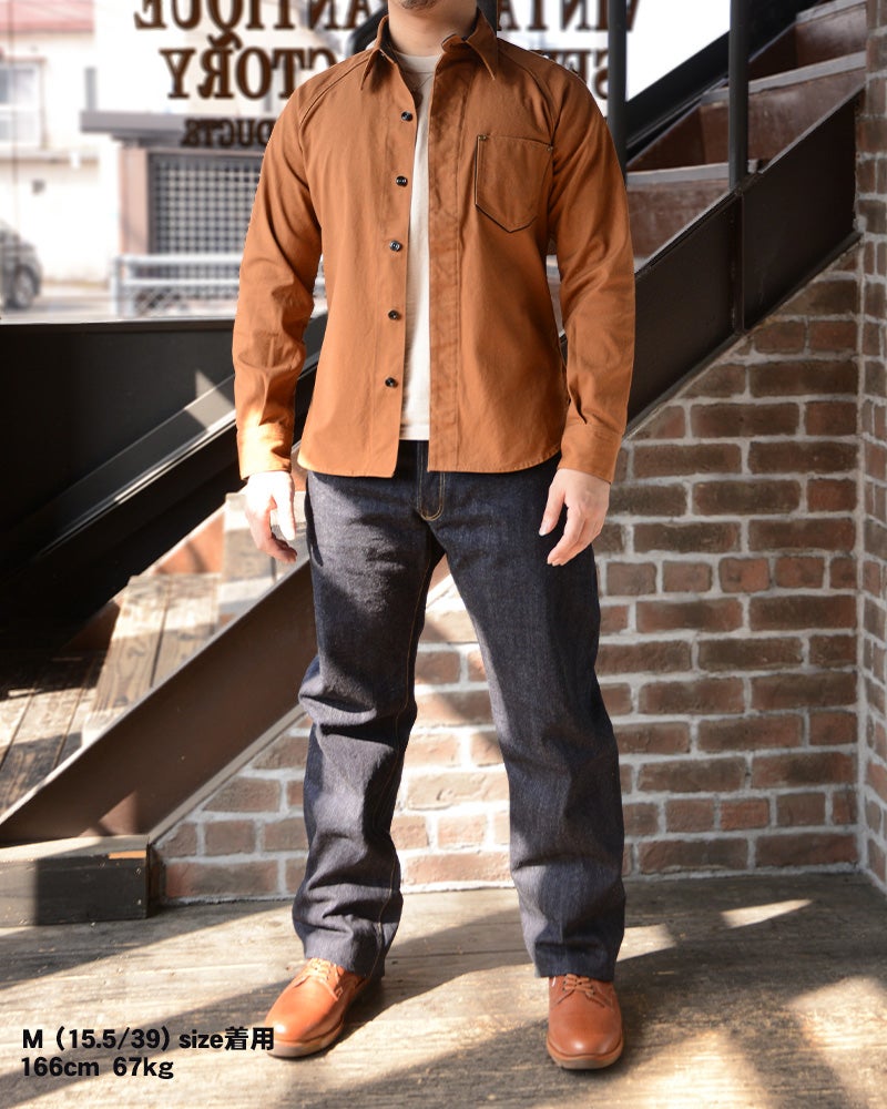この商品は、デラックスウエア創立以来から続くロングセラー製品7640デニムシャツの別色別素材タイプです。シャツ・カーバーオール・ジャケットなど多種衣料を融合させた独自形状、製品中最もタイトショートのスタイルがお客様に長く愛されています。 ヴィンテージ品には決して存在しない衣料、カタチ、ディティールながら、何故かアメカジに当てはまる存在として位置を築いたモデルだけに現代ヴィンテージ品に相当するモノと思っています。古き良きアメリカンヴィンテージの世界をもう少し進化させ、「これからヴィンテージ品に成り得る存在」を築き上げることが求められていることをロングセラーが実証しているかのように感じてなりません。1世紀間の過去を認めつつ、将来へ踏み出す一歩として「位置する製品7640そして7641」はデラックスウエアというブランドの代名詞でもあります。