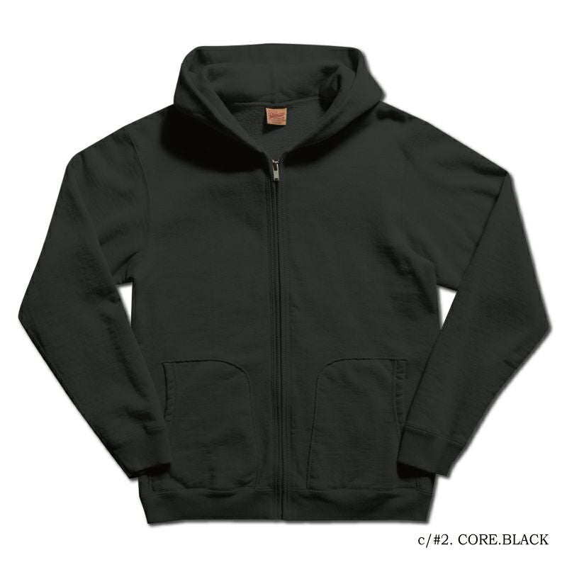 毎年人気を頂き、製造数が増える一方のフルジップパーカー「SPZ」。過去に一度「SPZ-01」というプリントモデルを用意したものの、その洗練されたカタチと素材感に「プリントデザイン不要」とまで感じさせるに至ったことを記憶しています。既に着用している方は御存知の通り、クセになる商品でもあります。極厚吊裏毛により保温性が高いこと、フルジップ開閉による着脱のし易さ、そしてスッキリとしながらも動き易い形状に「ついつい」手を伸ばし着用してしまう方も多いのではないでしょうか。デラックスウエアの旧式吊編機による極厚吊裏毛を知るための商品としても是非一度袖を通してみてください。