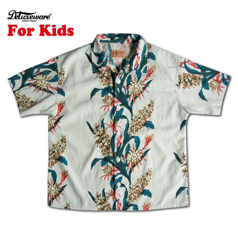 お客様の間で密かに囁かれていたキッズハワイアンシャツが登場です。しかも、最高品質を謳った大人用と遜色無く、国内唯一のレーヨンシャトル織機(レーヨン用旧式織機)による素材、職人の手仕事による捺染プリント、そして細部の創り込みを象徴する柄合せなど「子供用にするのはもったいない」品質で仕上げました。手抜き一切無しの大人顔負けの本格キッズハワイアンシャツを是非この機会にお見逃しなく!