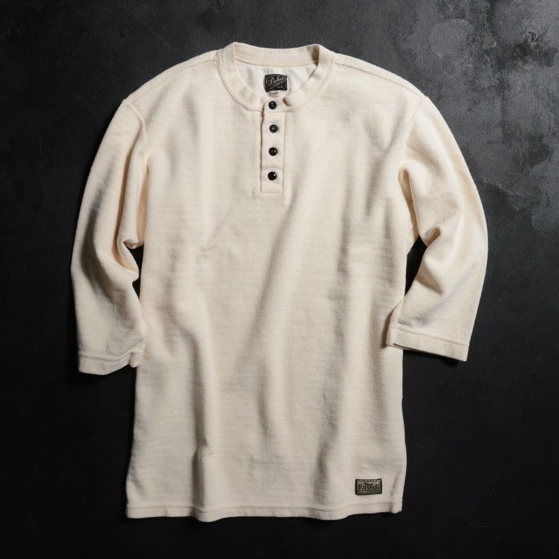 他の画像を見る Spinner.L[WORKER HENLEY NECK] 凸凹のムラ糸表面を焼却したシェイプコットンによる7oz吊天竺。 1920sワークヘンリー長袖ニット ¥ 12,100 税込 詳細を見る
