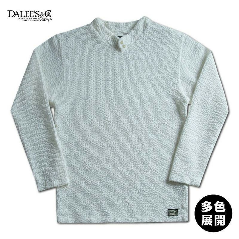 1900年代初頭のクラシックアメリカというコンセプトにより企画製造を行う「ダリーズ&コー」。全ラインナップ「存在しないモノ」としてオリジナル企画することも特徴です。一世紀以上の時間を経由したことで様々なモノが姿を消し、また新しい技術が開発されて来ました。その歴史において織機や編機は基本構造は不変であるものの、スピードの高速化を図り多様な柄を創出可能になりました。そんな技術経由の末に生まれた素材(編み物)がこのシアサッカーと言えるでしょう。本来は織物の二次加工技術で創るシアサッカーを、編み物で再現した変わり種の素材であることから現代ヴィンテージと成り得ます。古くも新しい提案としてこの素材を提案します。
