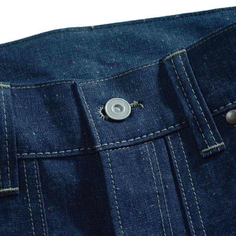 岡山県井原、新潟県見附で製造したオリジナル素材を使用。10.5ozインディゴデニムは経糸にロープ染色インディゴ糸、緯糸にトップ黒杢グレー糸を打ち込むことで変わった色合いのダークトーンに、ブラウンストライプは経密度を限界まで張ったネル地起毛なしで仕上げ、ウォバッシュは濃紺14オンスデニムに抜染ドッドをあしらいました。