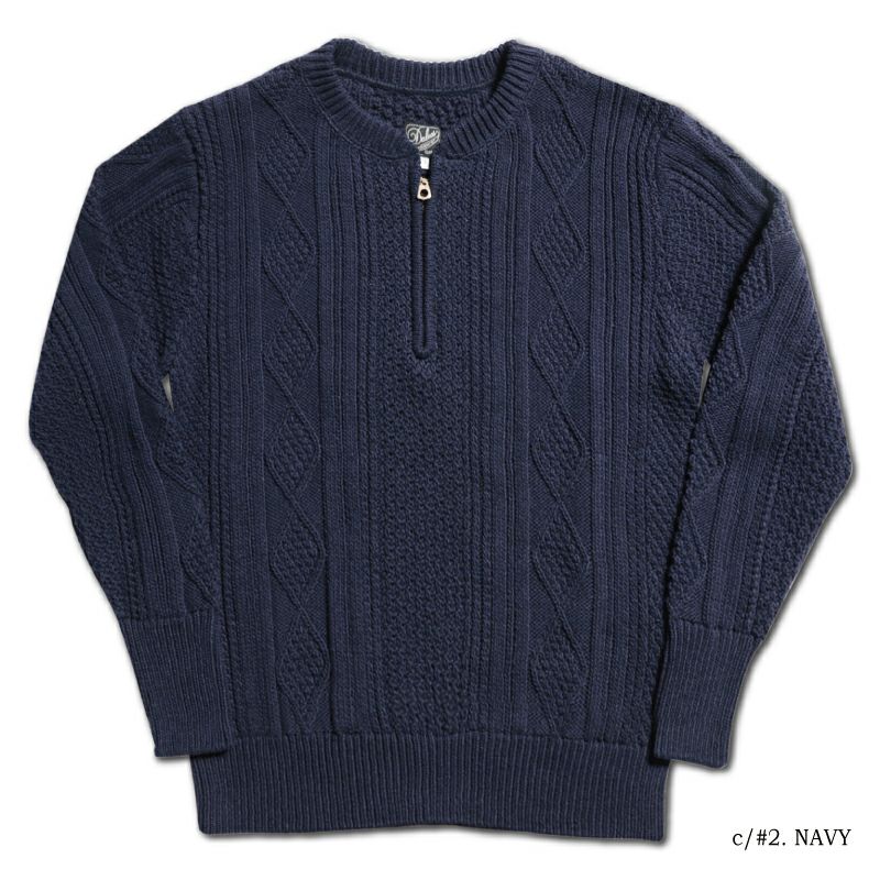 1940年代の手編みで創られたアランセーターを再現したコットンニットの「アイラッドセーター」。手編みならではの柄や厚み、ムラ感までリアルに再現しながらありそうで無かったハーフジップセーターとして提案します。今年はスウェットに加えてセーターもお試しあれ。