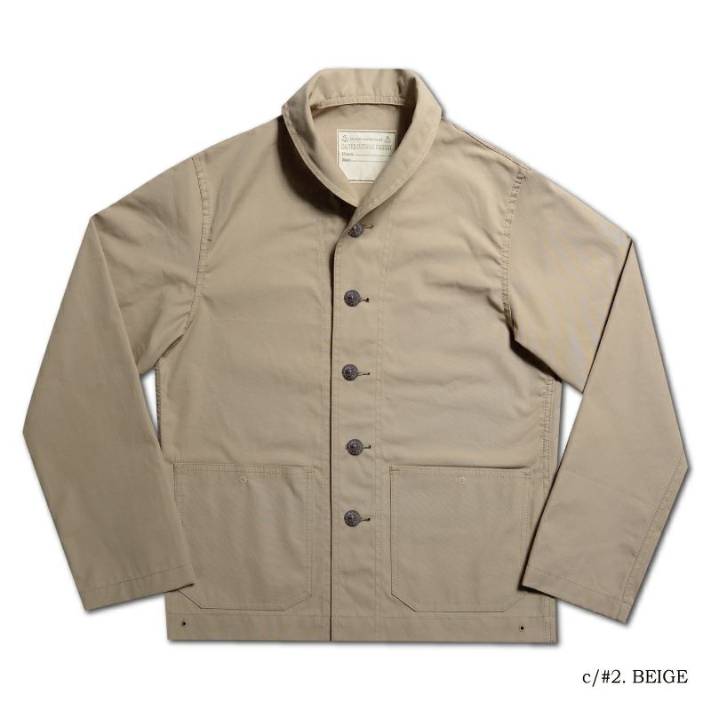 1940年にアメリカ海軍のジャケットとして有名なショールカラーのカバーオール。ボタン素材の違いや若干のディティールの違いにより前期型と後期型に分かれますが、このモデルは1940年代前期型を基に完全複製に努めた商品です。動き易さを考慮した寸胴シルエットと腕の太さ、そして一筆縫いを多用するミシンワーク、3cm間に定められた運針(針を落とす数)に規制があるミルスペック(軍規格)をも丁寧に再現しました。ヴィンテージには存在しない遊び心が生んだ商品です。2022年秋冬期中特別企画