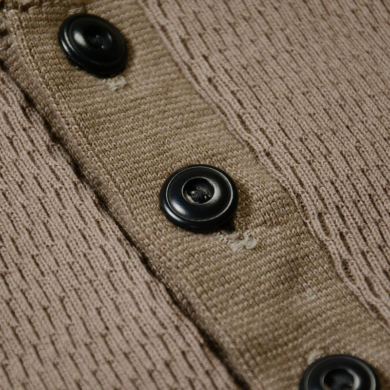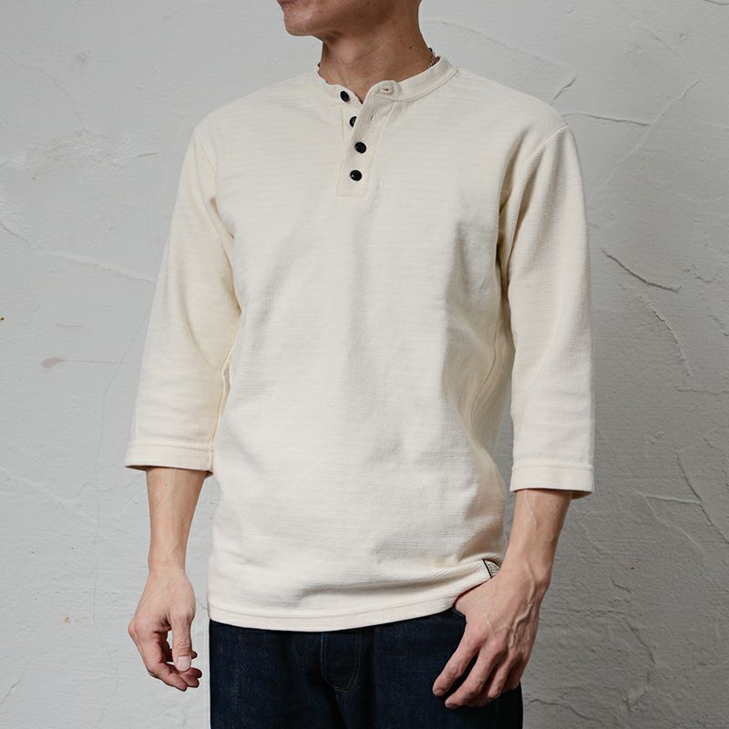 他の画像を見る Spinner.L[WORKER HENLEY NECK] 凸凹のムラ糸表面を焼却したシェイプコットンによる7oz吊天竺。 1920sワークヘンリー長袖ニット ¥ 12,100 税込 カートに入れる