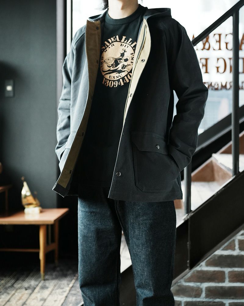 「もし1930年代にこんなものが存在したら」という仮説で生まれたデッキジャケット「M-223」は、防寒、防雨を目的としたジャケットとして生まれました。ありそうで無かった商品種なだけに、新しい発見や着こなしも期待出来そう。是非その機能性に、スタイルに触れてみて下さい。