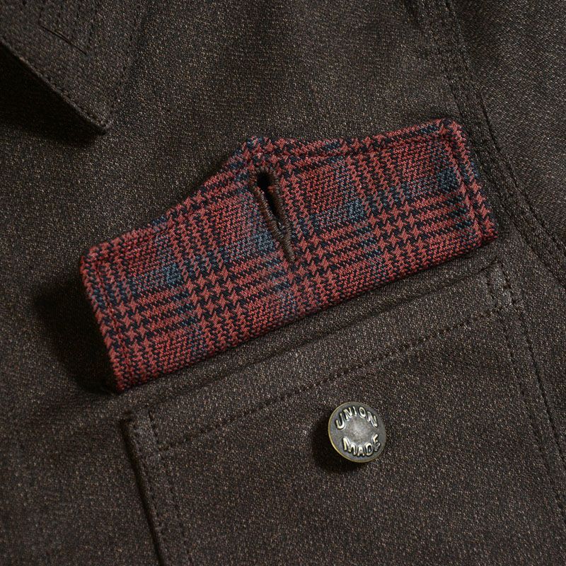 この型紙は、実在の1910年代フランスハンティングジャケットから型起こしし、オリジナルに作り替えた型紙です。エリの多重ステッチ、両胸の斜行ポケット、曲線を入れた上下前立て、腰ハンティングポケットを排除し立体アームホールとAラインの独自形状に作り替えています。