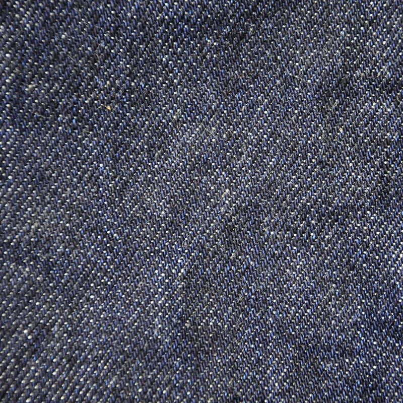 産地岡山井原にて製造したオリジナル13オンスデニム素材。インディゴロープ染色時、ロウソク炎の先から出る煙を収集した油煙炭を混合させ、そして旧式力織機にて織り上がった後にも油煙炭を塗り製造した「オリジナル炭デニム13オンス」です。着込むに従い、人による個体差ある経年変化が楽しめます。