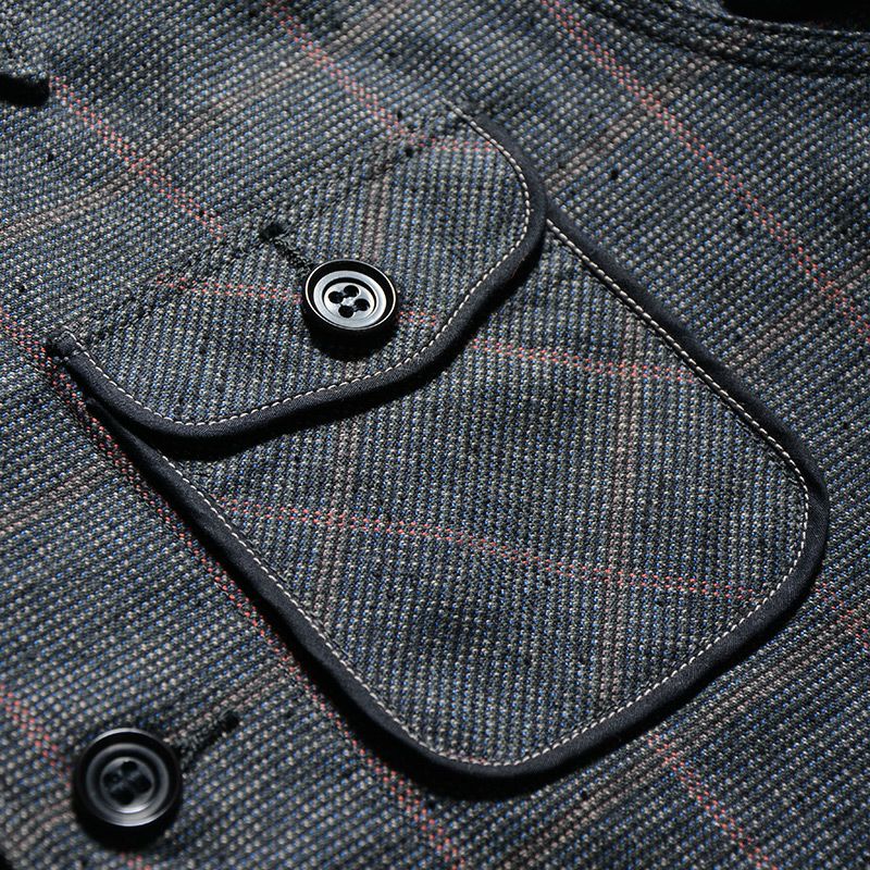 当時主流のカバーオールスタイルを、シャツ&ジャケットとドレス&ワークの2重コンセプトで創り上げたオリジナル製品。エリと、袖ライン、バックパネル等のシルエットとワークディティールの創り込み、そして年度で変わる素材感に着目し、シルエット、ディティール、素材の3ポイントを愛でるトップスとしてシリーズ化しています。2024年は織糸に8色、綿質3種類を駆使した素材は目を奪われるほどの出来栄えです。