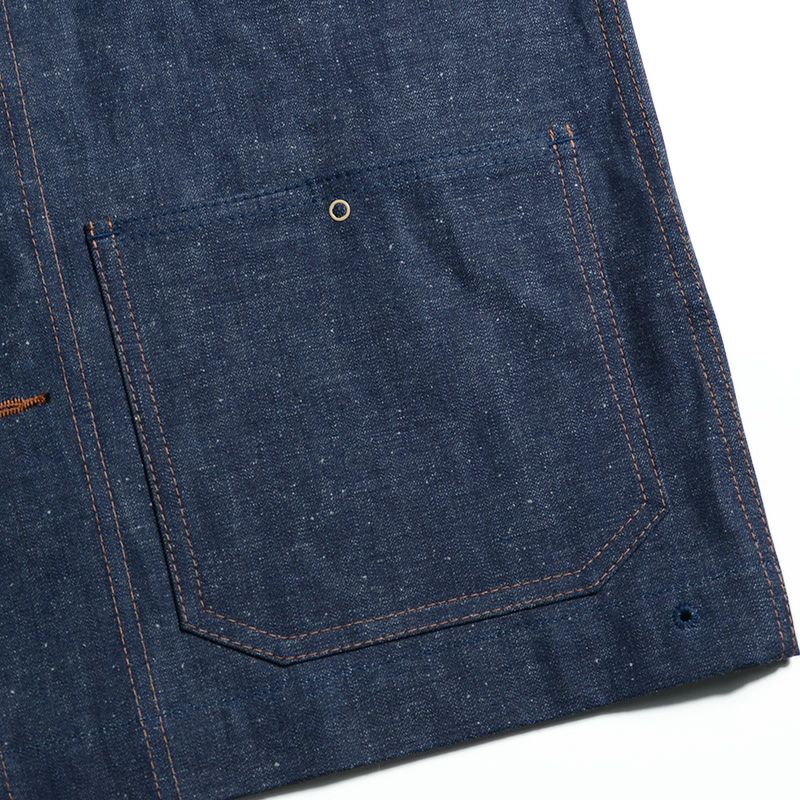 1940年にアメリカ海軍のジャケットとして有名なショールカラーのカバーオール。ボタン素材の違いや若干のディティールの違いにより前期型と後期型に分かれますが、このモデルは1940年代前期型を基に完全複製に努めた商品です。動き易さを考慮した寸胴シルエットと腕の太さ、そして一筆縫いを多用するミシンワーク、3cm間に定められた運針(針を落とす数)に規制があるミルスペック(軍規格)をも丁寧に再現しました。ヴィンテージには存在しない遊び心が生んだ商品です。2022年秋冬期中特別企画