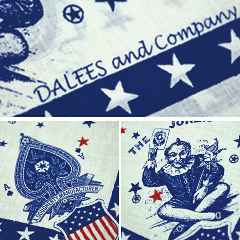 販売促進の目的で創られることが多かったバンダナ。色・柄そして種類も豊富だったことでバンダナコレクターもいるほど身近なヴィンテージ品として有名です。このヴィンテージバンダナの価値の判断するには少なからずの知識が必要ですが、素材、ディティール、デザイン内容そして型番表示が大きい所です。ですから、その価値を詰め込んで製造したモノがデラックスウエアのバンダナです。身近な価値としてポケットにバッグに忍ばせて頂ければと思います。