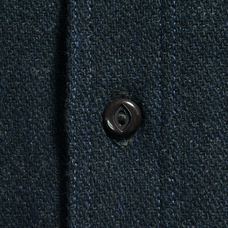 「CHIEF PETTY OFFICER」の頭文字からCPOと呼ばれるウールシャツ。元々はアメリカ海軍下士官のユニフォーム的存在で使われていたシャツまたはジャケットですが、広く民間に落とし込まれたことで様々な色やチェック柄が生まれたとされています。ヴィンテージを知る人は特にCPOが持つ特別なディティールに魅力を感じることも多いと思われます。私企画者もその一人ですが、魅力あるディティールとファッションとして着て楽しむ創りとは異なるという結果でした。「着て頂いて衣料」という意識のもと、リプロダクトしたディティールと追求した素材で提案します。