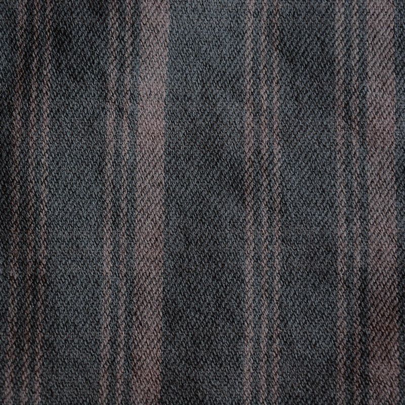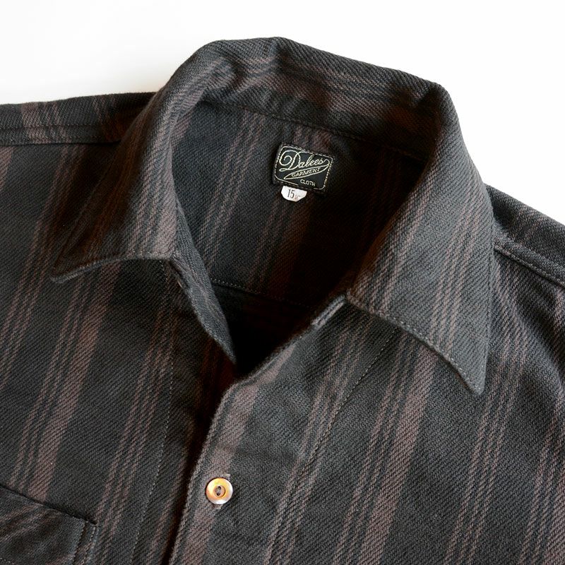 1920年代に「もしヘビーネルシャツが存在していたなら」という仮想に基づいて創出したダークトーンヘビーネルシャツ。素材を新潟県見附市で製造し、当時主流だったストライプ柄とダークトーンに寄せて先染め柄織りした。また、ボックス型シルエットでありながら若干のウエストラインが入ること、エリ形状が特徴的(通常エリを開襟に見立てた)であること、茶蝶貝を削り出した天然素材ボタンであることが特徴です。