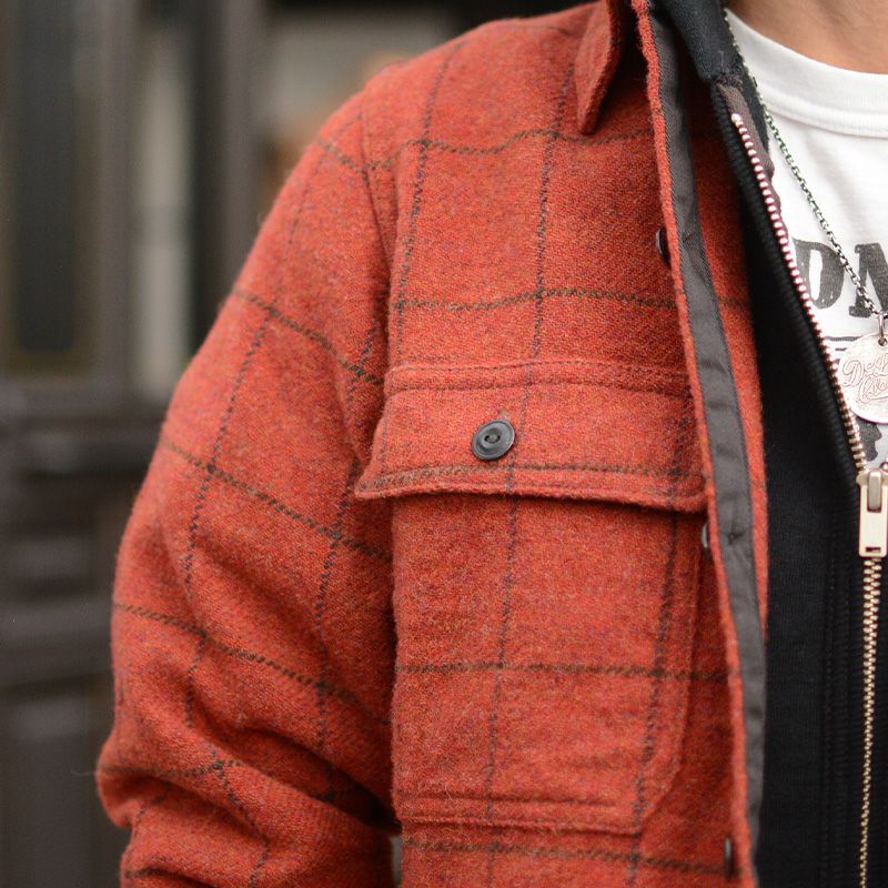 「CHIEF PETTY OFFICER」の頭文字からCPOと呼ばれるウールシャツ。元々はアメリカ海軍下士官のユニフォーム的存在で使われていたシャツまたはジャケットですが、広く民間に落とし込まれたことで様々な色やチェック柄が生まれたとされています。ヴィンテージを知る人は特にCPOが持つ特別なディティールに魅力を感じることも多いと思われます。私企画者もその一人ですが、魅力あるディティールとファッションとして着て楽しむ創りとは異なるという結果でした。「着て頂いて衣料」という意識のもと、リプロダクトしたディティールと追求した素材で提案します。