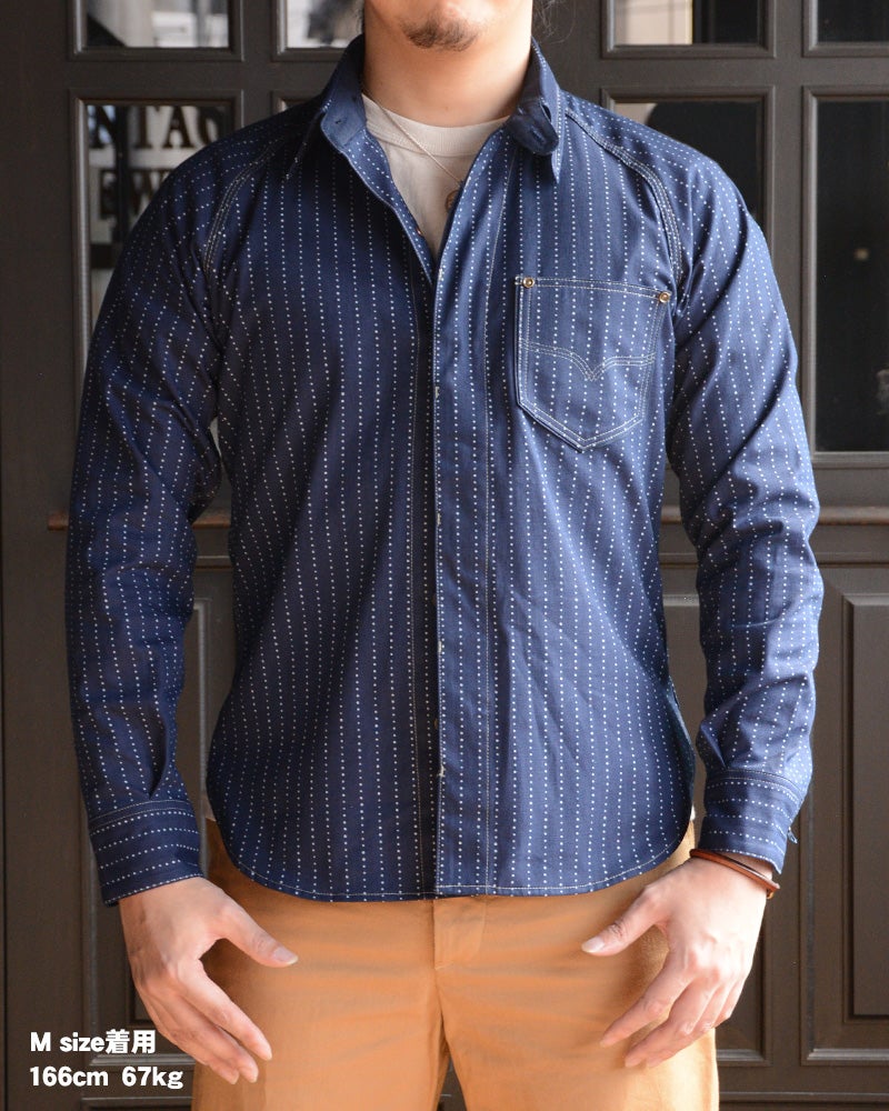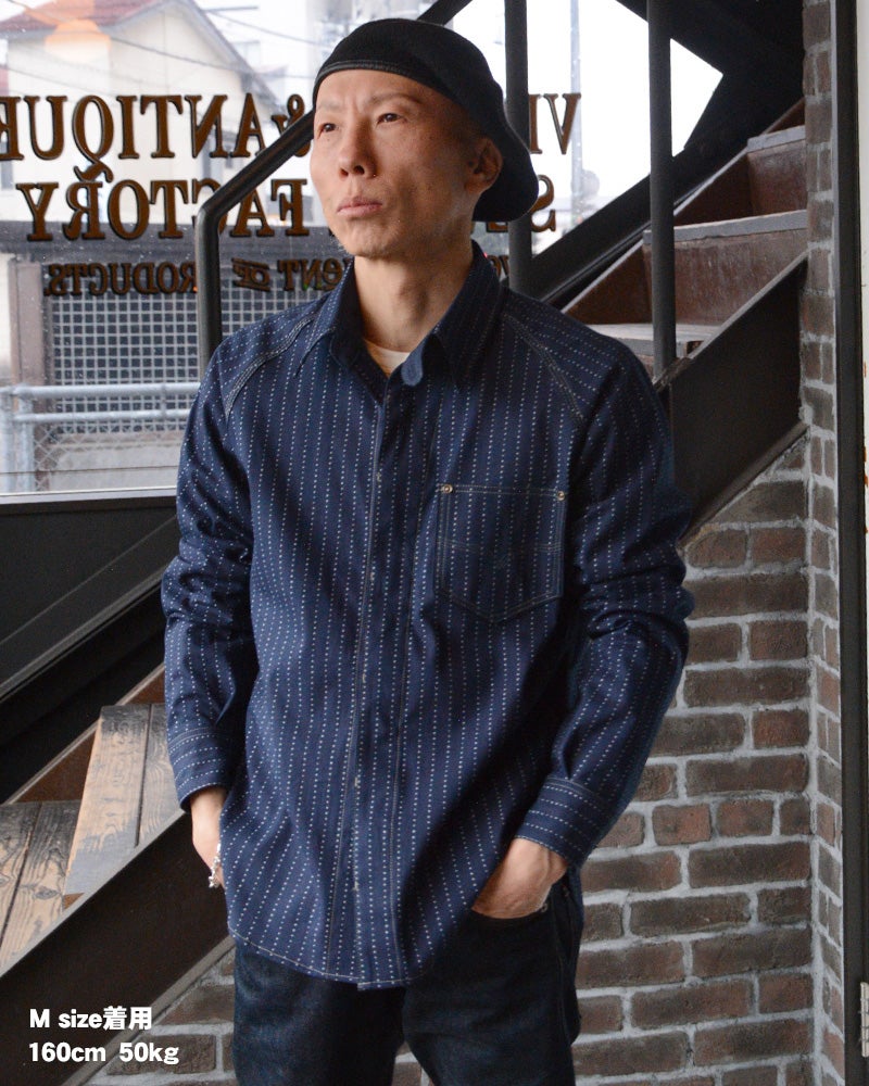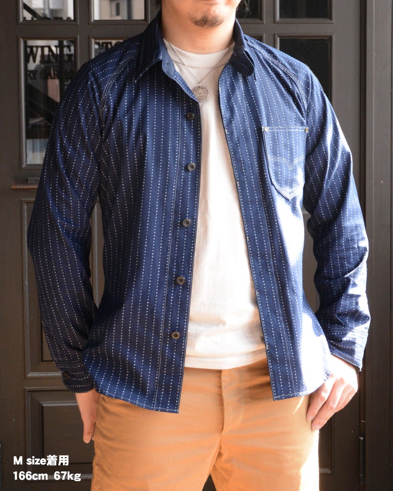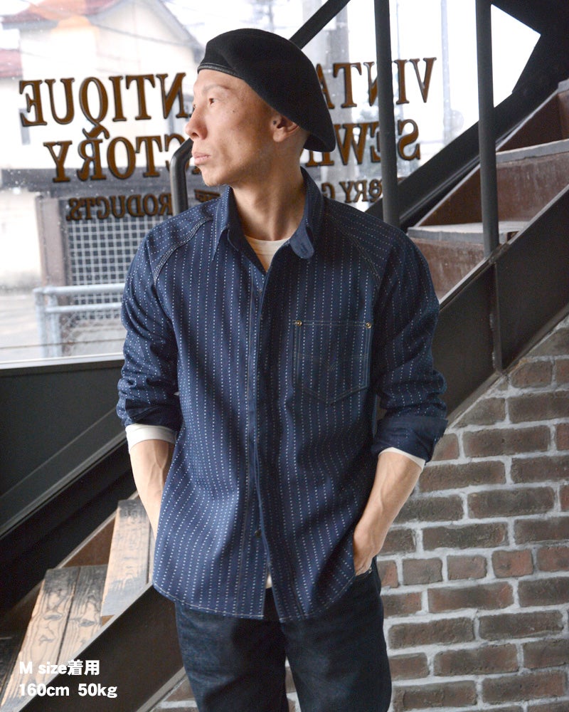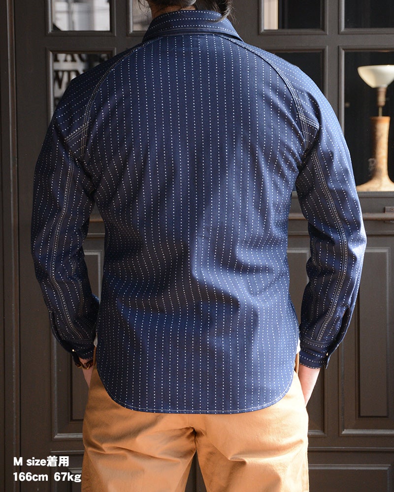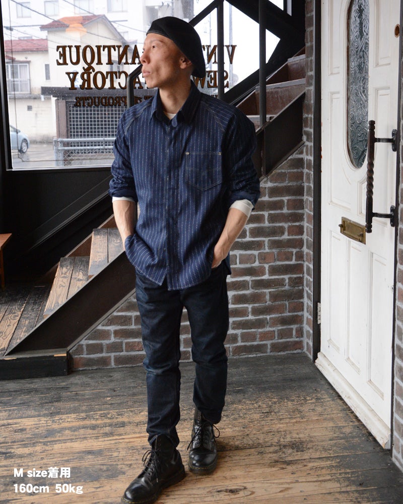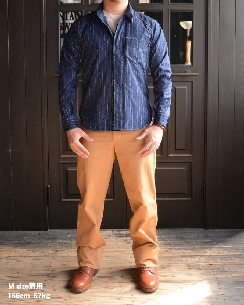 岡山県井原で織り上げたオリジナル9オンスウォバッシュ素材を使用したデラックスウエア人気の7640シャツタイプ。