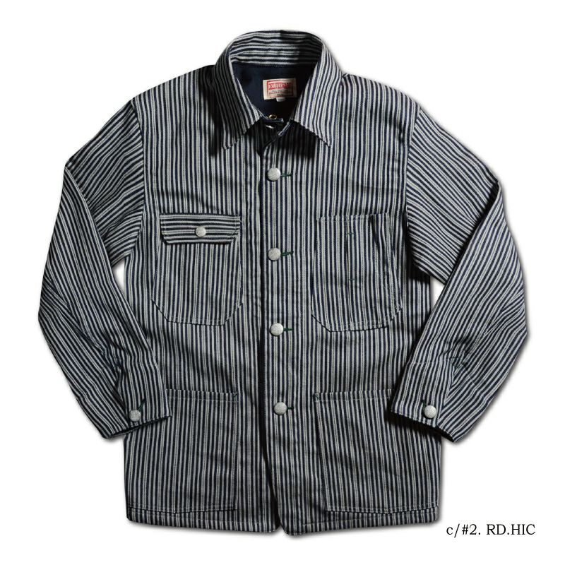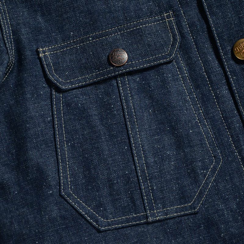 岡山県井原の旧式織機で製造した10.5oz ダークインディゴデニム素材と、新潟県見附でロープ染色インディゴを使用しオリジナル製造したランダムヒッコリーのヘビーネル素材の二種類を表地に使用。また、裏地には兵庫県西脇で製造した単色ヘビーネル素材を組合わせました。両色ともネルシャツ二枚重ねに相当する厚みと暖かさがあることからアウターの相当する内容として提案します。