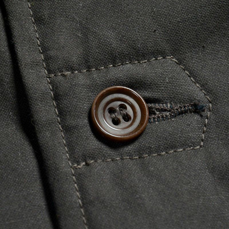 広島県福山で製造したダックキャンバス素材にパラフィン蝋を含侵させた特殊なファブリックと裏地にオリジナルアクリルボア、袖裏にはコットンキルティングをの組合わせた優れた防寒性が魅力。1960sハンティングとランチコートが融合した一種独特のスタイルによる古くて新しい雰囲気のランチコートで2021 年のファッションを創ってみては?