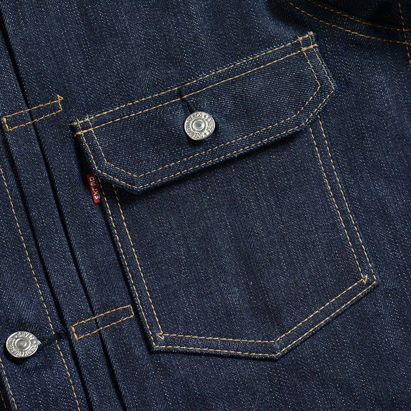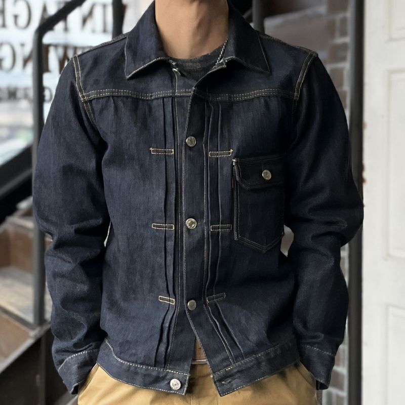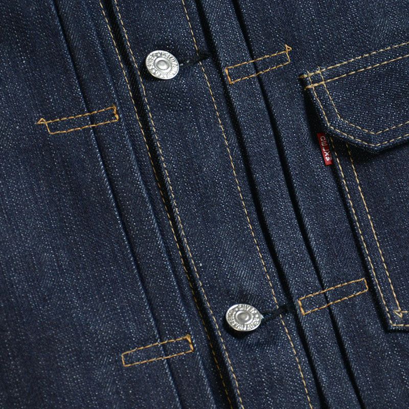 「作業着をファッションに変える」ことそのものが世論に対するメッセージとして、または反抗の象徴となった1950年代。そこからおよそ70年経過した現在にもその「精神」は息づいているかのようにデニムジャケットは「何かを主張する」商品であると思います。しかし情報が飽和する現代では局地的かつ利己的なモノは受け入れられる場が少ないようにも感じます。「主張を感じながらも魅力」を発することが求められ、素材であれディティールであれカタチであれ思考を重ねた作品だけが認められるモノとなるのでしょう。古き良き部分、商品が持つイメージ、そして今に対応する志向が混ざり合い一つになった商品として提案します。そう言う意味では「もの言う商品」だと自負しています。 ※ヴィンテージステッチと呼ぶ「製造法」により、縫製糸14種を使用しミシンの運針(ピッチ)を5針から8針と大きく大胆に縫製したパッカリングなどの経年変化が期待出来るステッチが特徴。