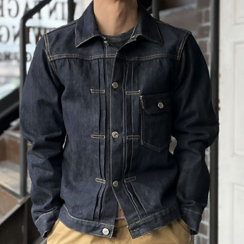岡山県井原でオリジナル製造した15オンス濃紺ローグデニムを使用したリアルデニムジャケット。ただヴィンテージ品を模倣した内容と一線を画し、本物であるべきモノとデラックスウエアの理想が融合したデニムジャケットが「DX4015」です。デラックスウエアでは、当時のディティールや機能性を緻密に再現しながらも「今のスタイル」にリサイズしています。濃紺縦落ちの経年変化と進化したフォルムが楽しめるデニムジャケットを是非。