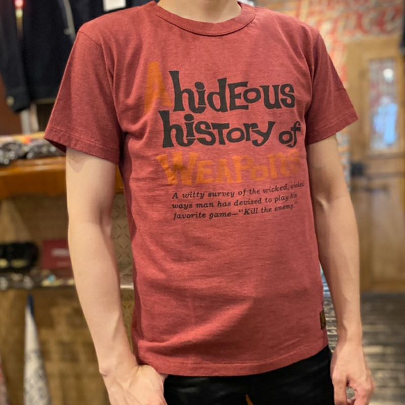 1960年代後半にアメリカで流通したTシャツ。吊編機で製造されたその素材は「薄くペラペラの厚さ」と「チープな雰囲気」が何かカッコよさを持っていました。そのチープなカッコ良さを「少しばかり品質向上したら」という企画で製造した素材がこの2018年から新登場し2019年も展開するガス焼き吊天竺です。ですから、プリントデザインも1960年代後半を彷彿するような柄を製作しています。「色落ちしたジーンズにヤレて少しくたびれた雰囲気の丈夫なTシャツスタイル」これがこのMTGシリーズが目指すところです。プリントは1960年代の風潮を反映した色・字体・メッセージ(言葉)が「1960年=個性の時代」を彷彿する内容あるデザインです。