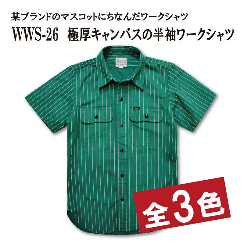 当時某ブランドのマスコットに寄せたワークシャツとして企画しました。丈夫で長持ちを謳い素材にデザイン(ストライプなどの柄)を入れ差別化と見た目に凝った素材が魅力のこの時代。単純でありながら、その独特の色使いが何故か魅力に感じられる方も多いのではないでしょうか。ですから「ワークウエア」「色」「素材」をキーワードに創り上げた半袖シャツが「WWS-26」となります。白と黒に陥りやすい時期に一枚加えて「華やかさ」を演出してみてはいかがでしょう。