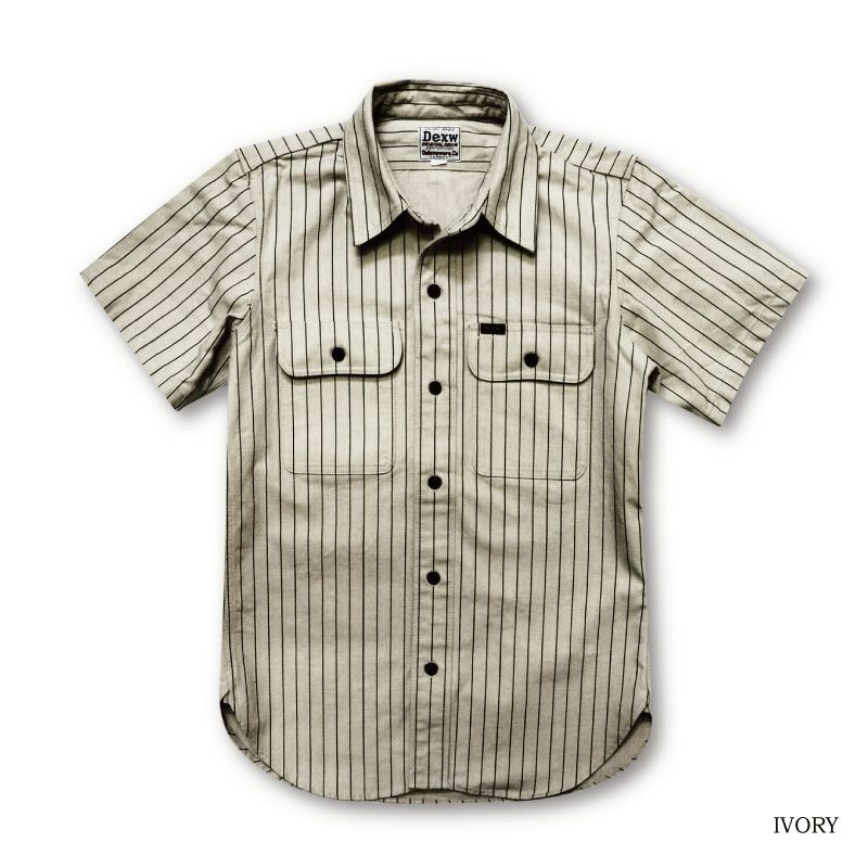 2019年の新作半袖ワークシャツ。岡山県井原の旧式織機から製造した極厚キャンバス素材は、汗染みや強い直射日光を防ぎ、高い耐久性を持つことからハードな使用にも、バイクなどのウエアにも最適。気を遣わずにシャツをハードに扱いたい方は特に必見です。