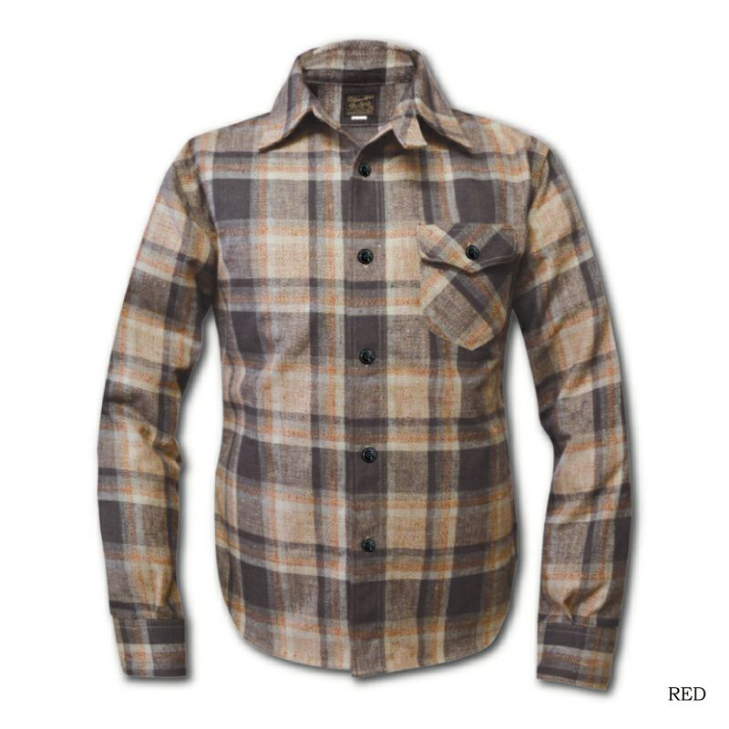 この生地素材は、兵庫西脇の旧式織機にて製作した“柄物ダック”であり、全6色の撚り杢糸を製作し、通常は単色で織られることの多いダック生地組織にてヴィンテージのウェスタン柄を織り上げた一風変わったミディアムウェイトネルシャツとして仕上がっています。目の詰まった平織組織であるダックはその丈夫さが魅力であり、また多色杢糸にて創出されたチェック柄は複雑な色相を見せ、ムラ糸が作り出す経年変化も楽しみの一つ。さらに裏には微起毛を施すことで傑出した肌触りと適度な保温性を確保した生地となっています。