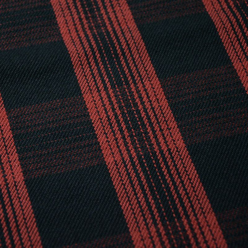 新潟県見附の旧式織機を使用し超低速で織り上げたヘビーネル素材。直接染料と呼ばれる染色法により色合いのエイジングも楽