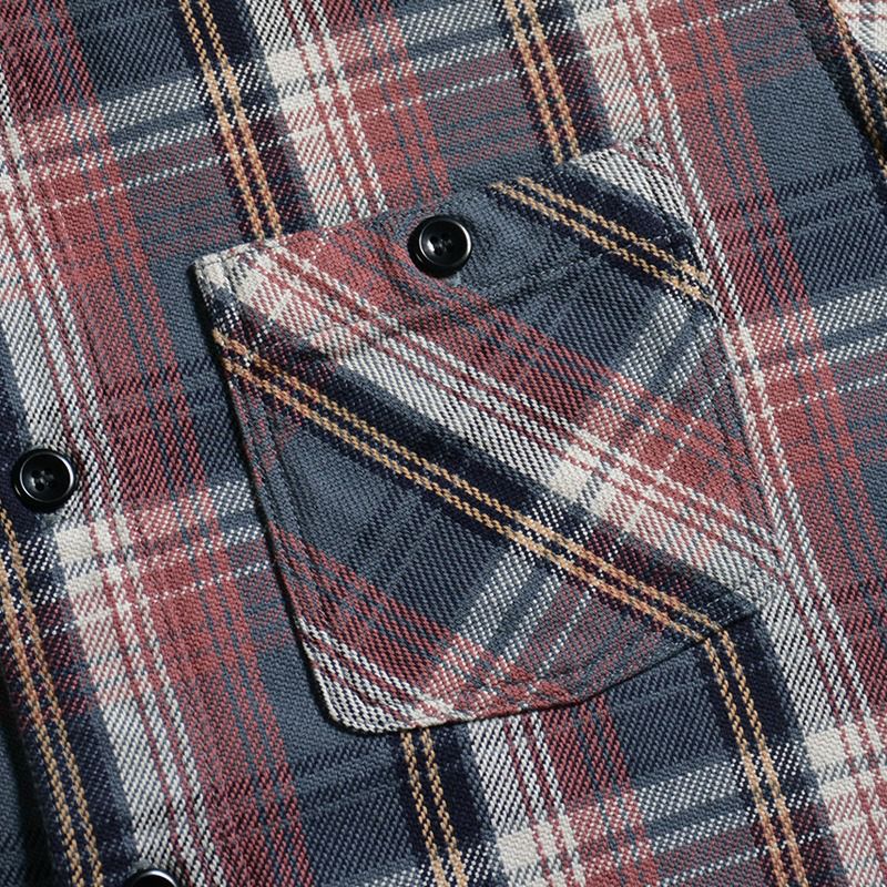 兵庫県西脇の旧式織機で織り上げたヘビーネルシャツ。厚くザックリとした素材ながら裏地は深起毛が入りフカフカの着心地が魅力。1960年代に見られたグレーを起点にした配色チェックがアメカジらしい着こなしを提案します。2021秋冬期中特別商品。