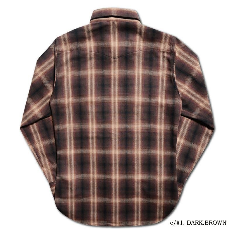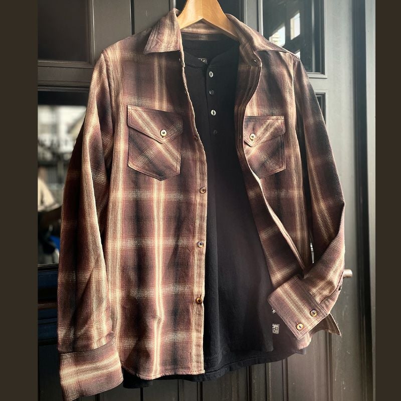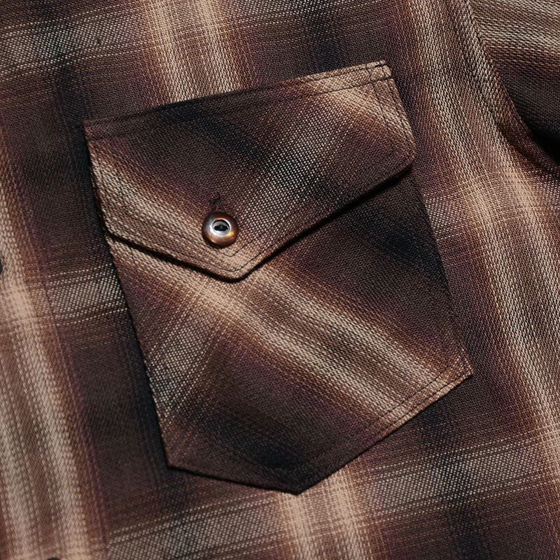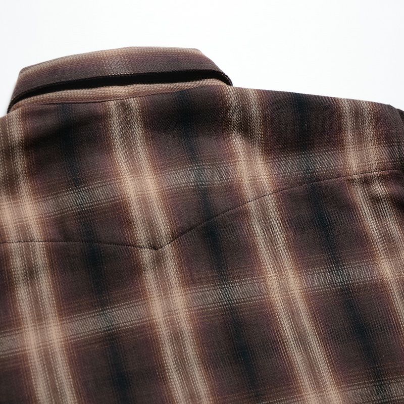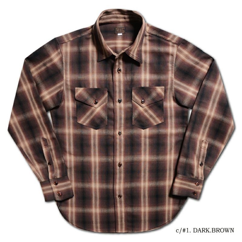 兵庫県西脇で製造したミディアムネル素材。厚すぎず薄すぎずの素材感は3シーズン対応の幅広い使いやすさが魅力です。濃色を用いてオンブレー(ボカシ織り)表現した一風変わったチェックシャツは大人の雰囲気が感じられる商品。使い勝手の良さも合わせて一枚は持っておきたいシャツ。