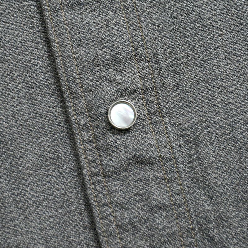 デラックスウエアオリジナル企画にて製造した素材は、使い込む程に織り糸目が浮かび上がる独特の経年変化がお楽しみ頂けます。ディテールは、ヴィンテージを基にした縫製仕様(糸ピッチ、主要部の二本針巻縫い)に加え、一部立体裁断による着心地と形状の改善・追求により絶妙なサイジングに創り上げたウエスタンシャツです。ジャストサイジングを体感出来る、デラックスウエアオリジナルのスタイルとして自信を持って提案致します。