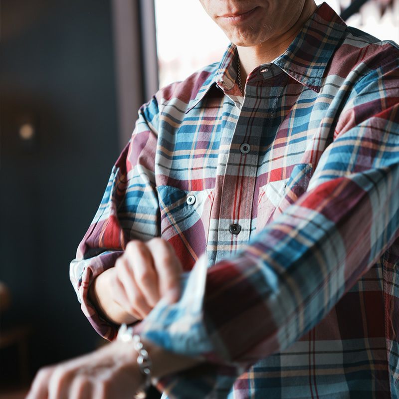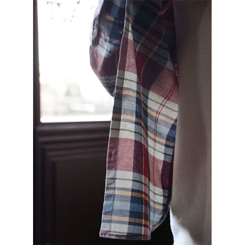毎年人気のオールシーズン対応のスルーチェックシャツにマルチチェック柄が登場。軽量かつ丈夫で風も水も通過する特殊素材は兵庫県西脇でオリジナル製造したもの。夏には腕まくりして、春秋は羽織として、冬にはコートのインナーとして使える最も身近に活躍する人気シャツです。