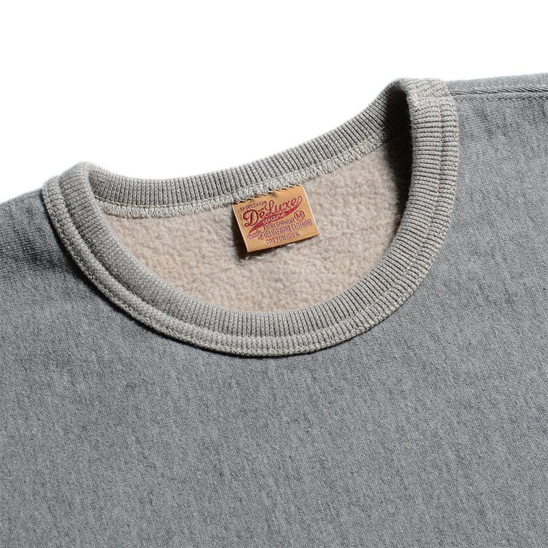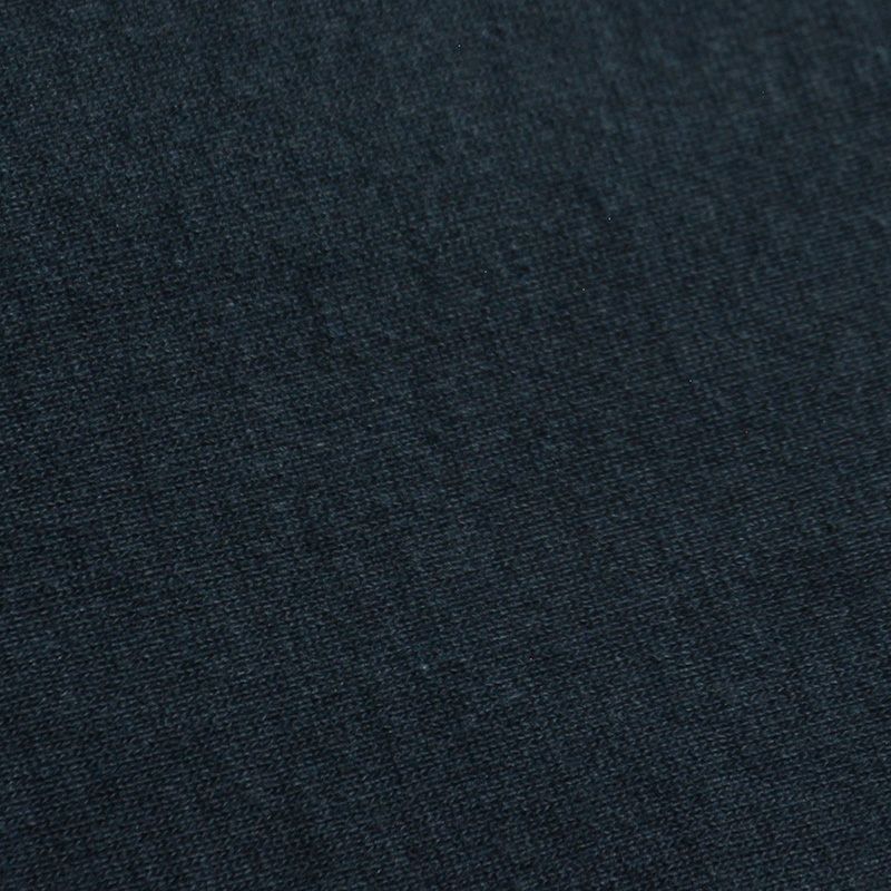 和歌山にて旧式吊編機により製造する吊裏毛素材。本来この旧式編機は「フワフワに柔らかく空気を含むように編み上げる特徴」を持ちますが、デラックスウエア企画では旧式吊編機に手を加え、最高密度で編み上げることでしっかりとしていながら突出した高保温性を得ています。またドライな手触りと着込む程に体に馴染む質感がデラックスウエアのオリジナル吊裏毛の特徴です。