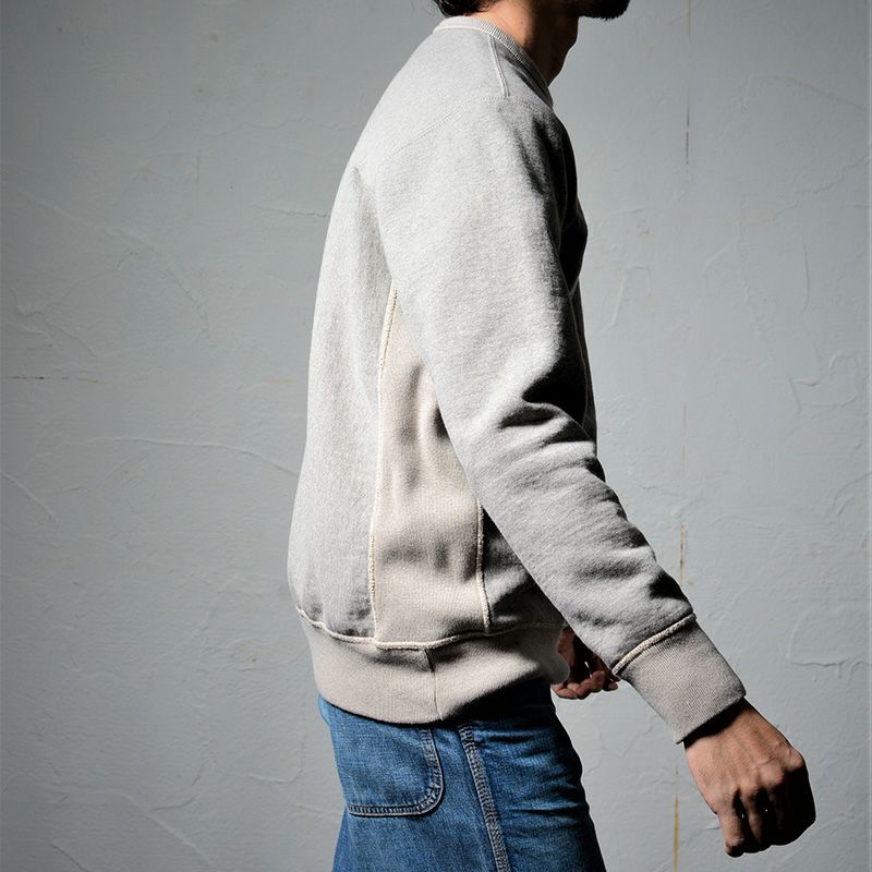 唯一和歌山に存在する旧式吊編機を使用した最高密度素材のスタイリッシュサイドリブスウェット。密度を入れゆっくりと編み上げたしっかりとした質感と高保温性が魅力。身頃地が縦使いに変わりサイドにリブ編みがはめ込まれた形状と、立体型紙による動きやすさが特段の着易さを生み出すスウェット。最古ヴィンテージミシン「ユニオンスペシャルフラットシーマ」を使用しながらも高品質を謳う縫製も見所のひとつ。2022年秋冬期中特別商品。