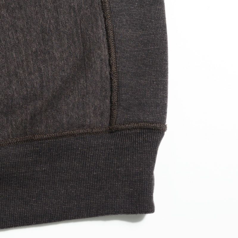 唯一和歌山に存在する旧式吊編機を使用した最高密度素材のスタイリッシュサイドリブスウェットにハーフジップモデルが登場。身頃地が縦使いに変わりサイドにリブ編みがはめ込まれた形状と、立体型紙による動きやすさとハーフジップによる着易さを生み出すスウェット。密度を入れゆっくりと編み上げたしっかりとした質感と高保温性が魅力。ヴィンテージミシン「ユニオンスペシャルフラットシーマ」を使用しながらも高品質を謳う縫製も見所のひとつ。2022年秋冬期中特別商品。