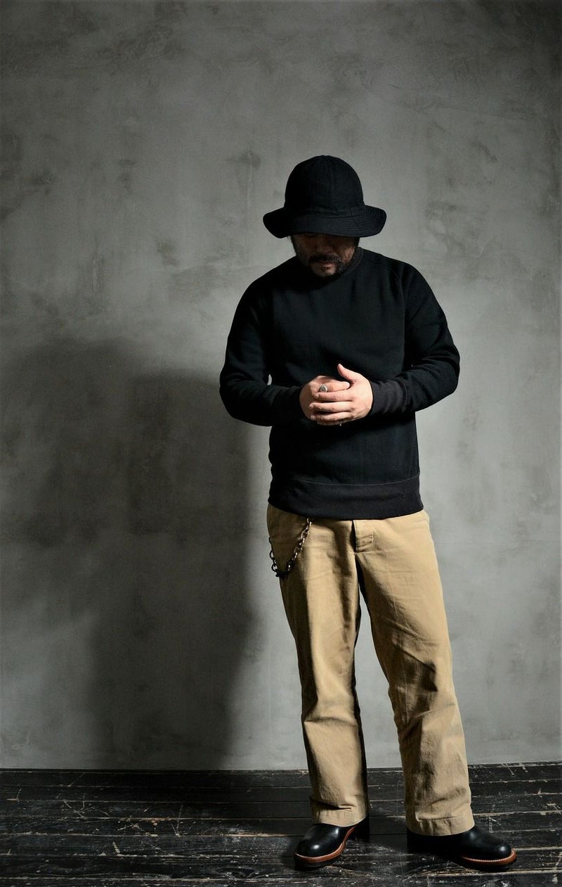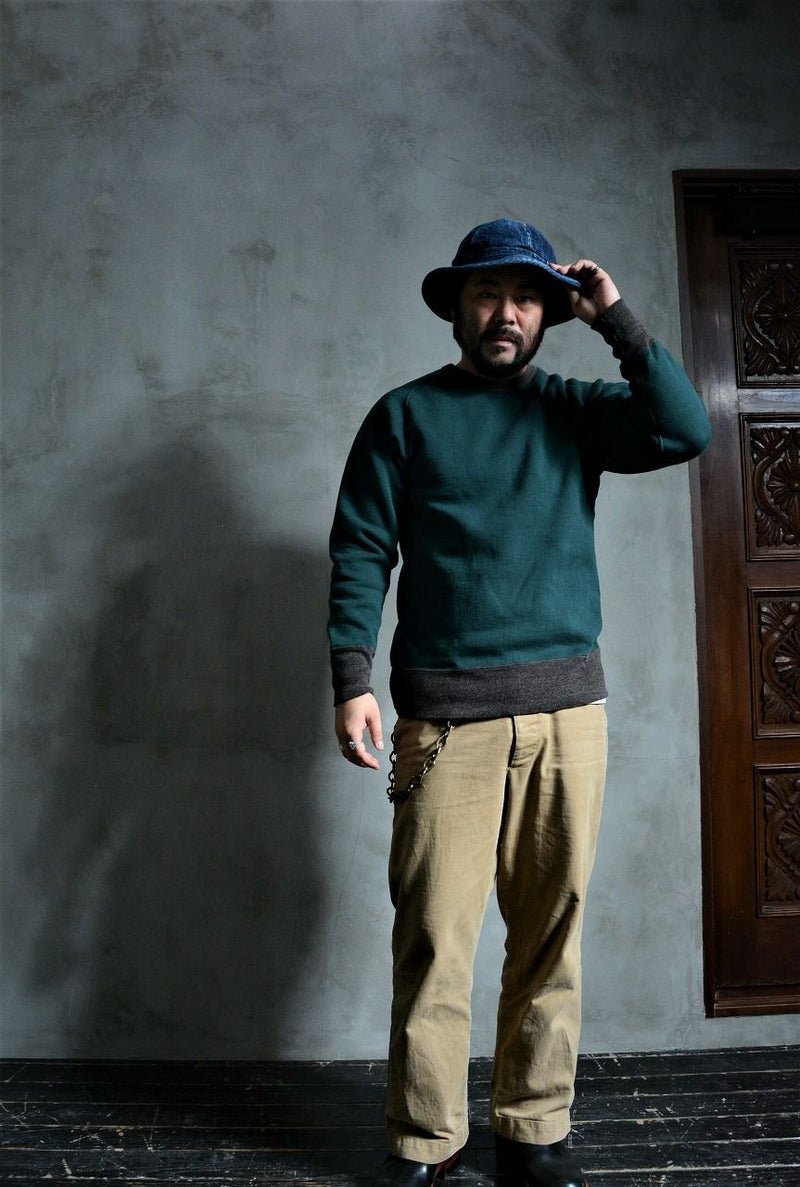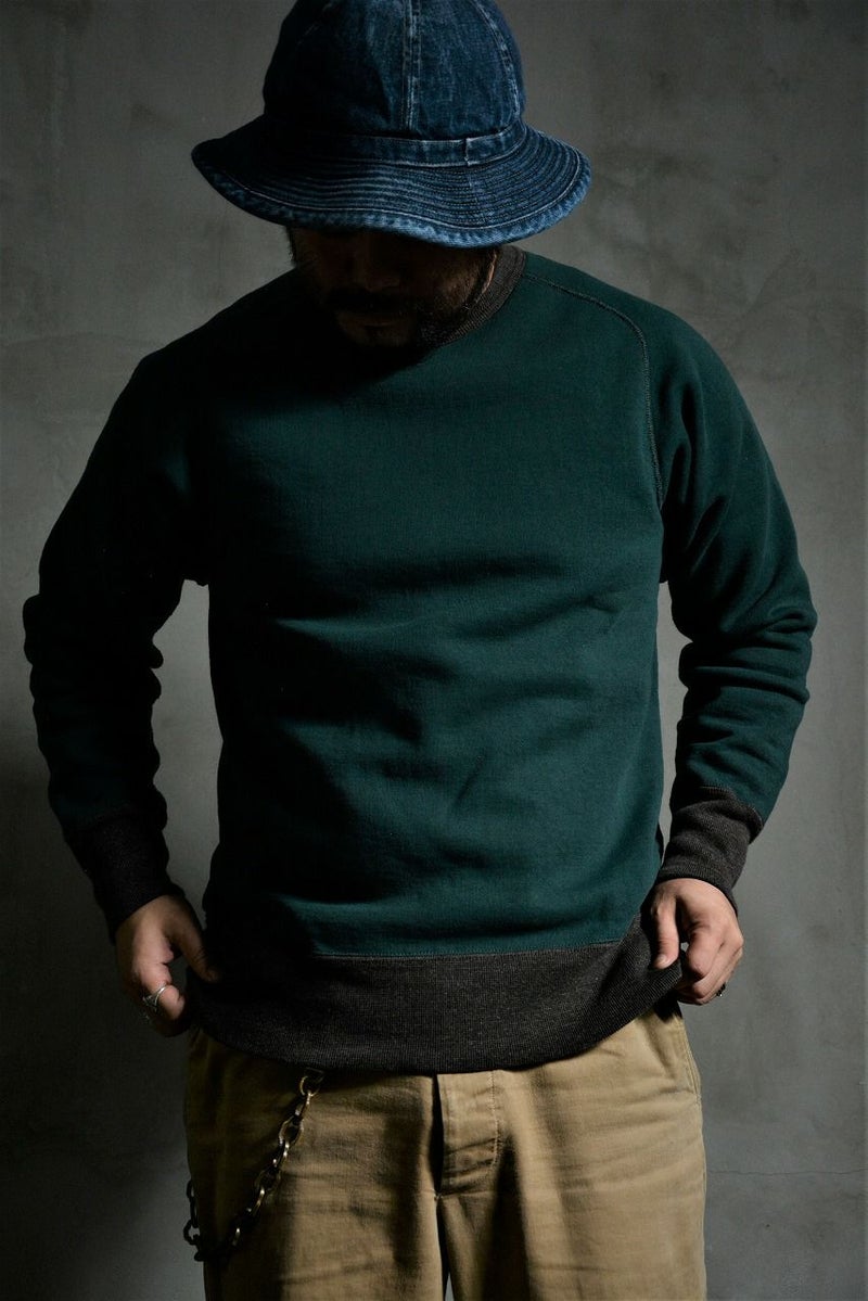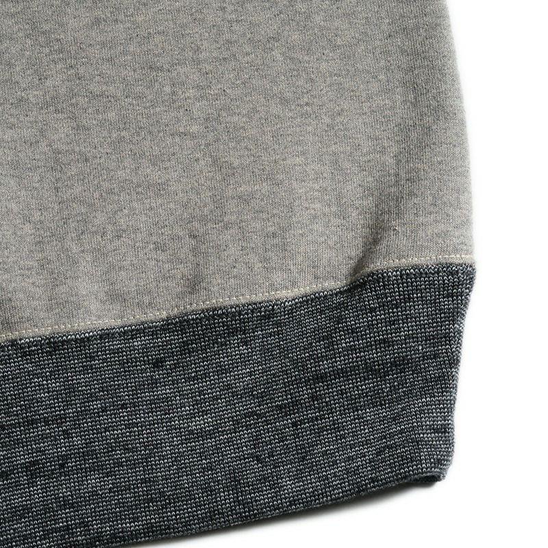 既に80年近く存在するコットン製スウェットシャツ。当時は下着の一部として、トレーニングウエアや防寒着としての役割を持っていましたが、現在においてはファッションとなりました。しかし、我々の考える「スウェットシャツ」とは単に見た目だけに捕らわれず、機能性やその細部の創りに価値を見出しています。見た目だけに捕らわれない「本物」たる所以を追求し、進化させたら「こう」なりました。このモデルは、立体フリーダムスリーブという特異な形状とユニオンスペシャル フラットシーマによる類稀な曲線ソーイングにて製造した高品質なフリーダムスウェットです。史上稀な形状と創りが垣間見れる1着です。2021年秋冬期中特別商品では、前Vガゼットを排除し、配色モデルに仕上げた一種変わった組合わせにより提案致します。