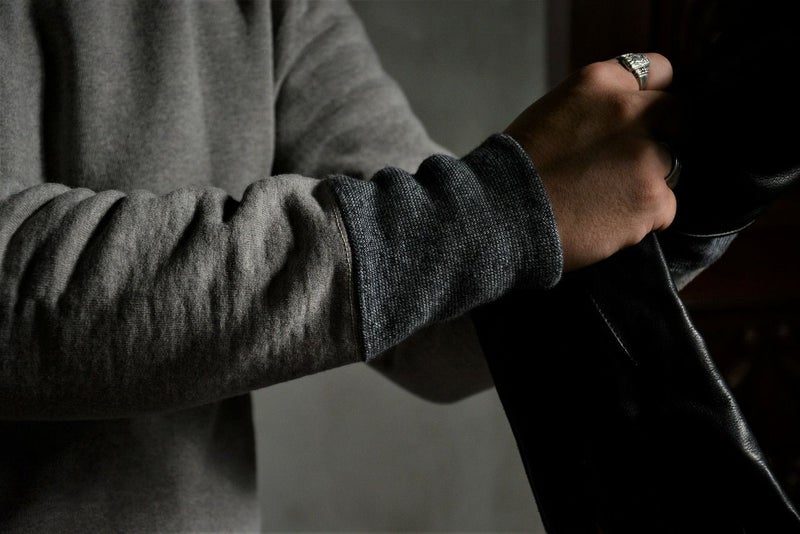 唯一和歌山に存在する旧式吊編機を使用した最高密度素材のフリーダムスリーブスウェット。密度を入れゆっくりと編み上げたしっかりとした質感と高保温性が魅力。曲線で成り立つフリーダムスリーブを立体型紙に引き直し着易さと動き易さが融合した形状です。最古ヴィンテージミシン「ユニオンスペシャル フラットシーマ」を使用しながらも高品質を謳う縫製をフリーダムスリーブでカタチにしました。2021年秋冬期中特別商品。