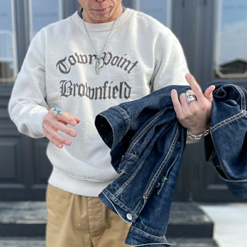 国内唯一の旧式吊編機による最高密度スウェットのシンプルロゴデザイン